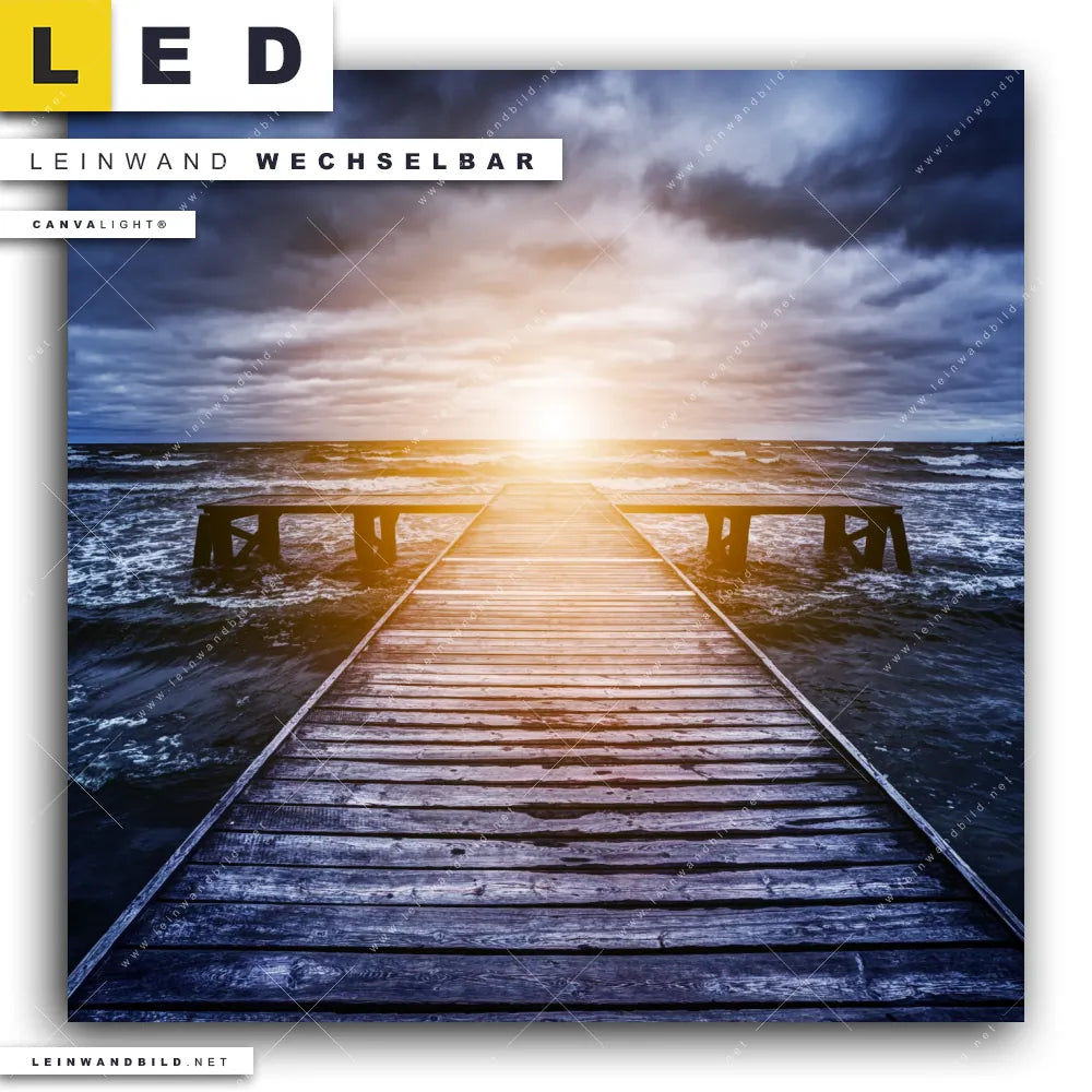 Du bist auf der Suche nach einem Landschaften, Strand - Meer LED Leinwandbild im Quadratischen Format? Begriffe wie Küste, Steg, Weg, Herbst, Sonnenuntergang - Sonnenaufgang, Urlaub - Reisen, Deutschland, Pier, Sommer, Ostsee - Nordsee haben Dich auf der Suche nach Deinem neuen XXL LED Wandbild mit wechselbarer Leinwand inspiriert? Farben wie Blau, Schwarz, Orange dürfen auf Deinem neuen Leinwand-LED-Bild nicht fehlen und Leuchtbilder im Natürlich - Realistisch Stil passen perfekt zu Deinem Einrichtungsstil?