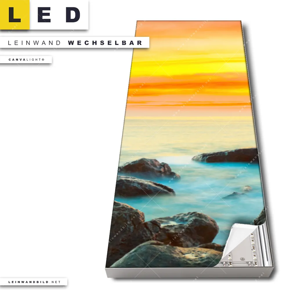 LED Leinwandbild Canvalight® TEX | Sonnenuntergang über dem Meer | Schmal