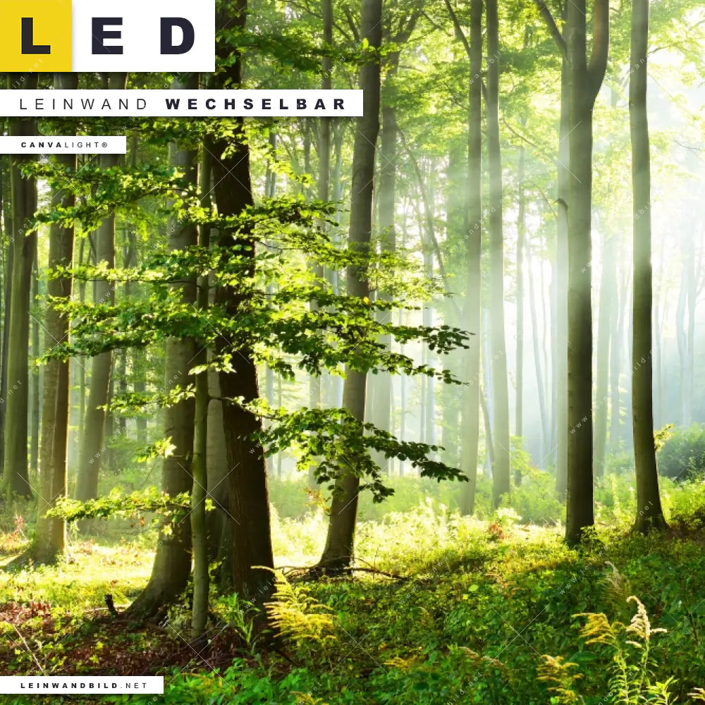 LED Leinwandbild Canvalight® TEX | Sonniger Morgen im Wald | Querformat