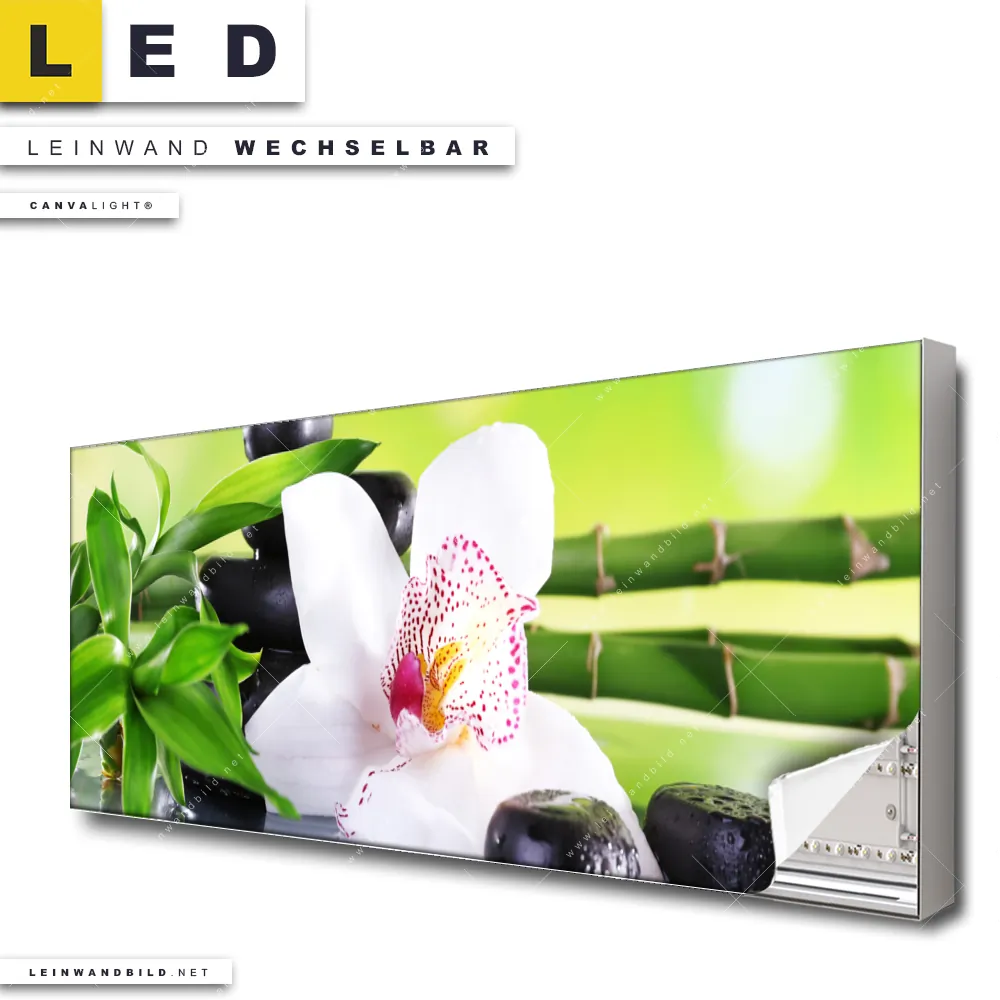 Du konfigurierst Dein individuelles LED Leinwandbild Canvalight® TEX | Spa Wellness Steine | Panorama und wir produzieren es NEU für Dich. Unsere Blumen - Botanik, Buddha - Feng Shui LED Bilder mit wechselbarer Textil-Leinwand sind KEINE Lagerware. Du bist Dir unsicher, welches Motiv oder Format das richtige für dein individuelles Canvalight® Leuchtbild ist, dann helfen wir dir gerne weiter und beraten dich!