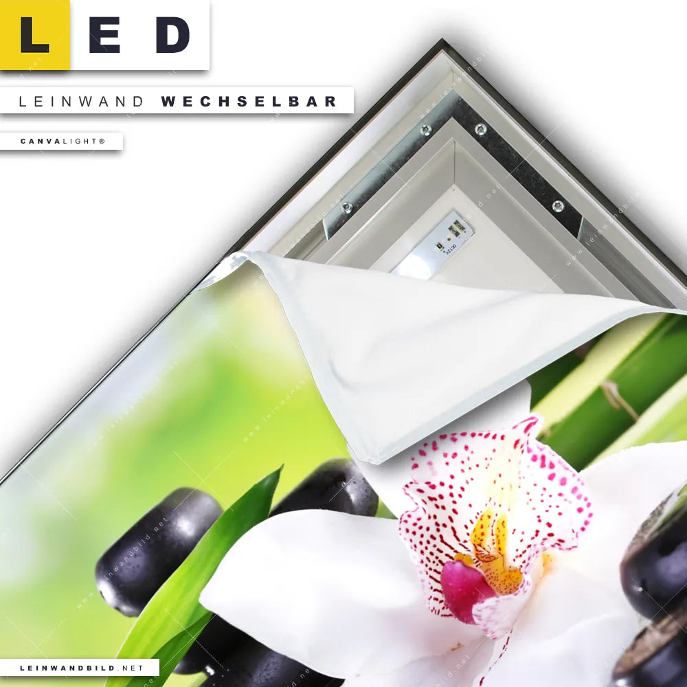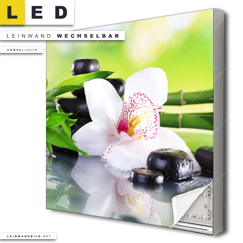 Du konfigurierst Dein individuelles LED Leinwandbild Canvalight® TEX | Spa Wellness Steine | Quadrat und wir produzieren es NEU für Dich. Unsere Blumen - Botanik, Buddha - Feng Shui LED Bilder mit wechselbarer Textil-Leinwand sind KEINE Lagerware. Du bist Dir unsicher, welches Motiv oder Format das richtige für dein individuelles Canvalight® Leuchtbild ist, dann helfen wir dir gerne weiter und beraten dich!
