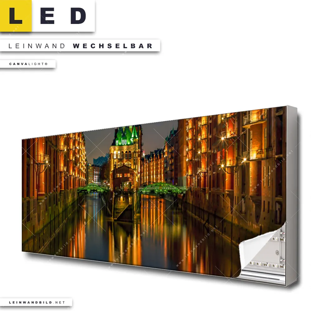 LED Leinwandbild Canvalight® TEX | Speicherstadt Hamburg | Panorama
