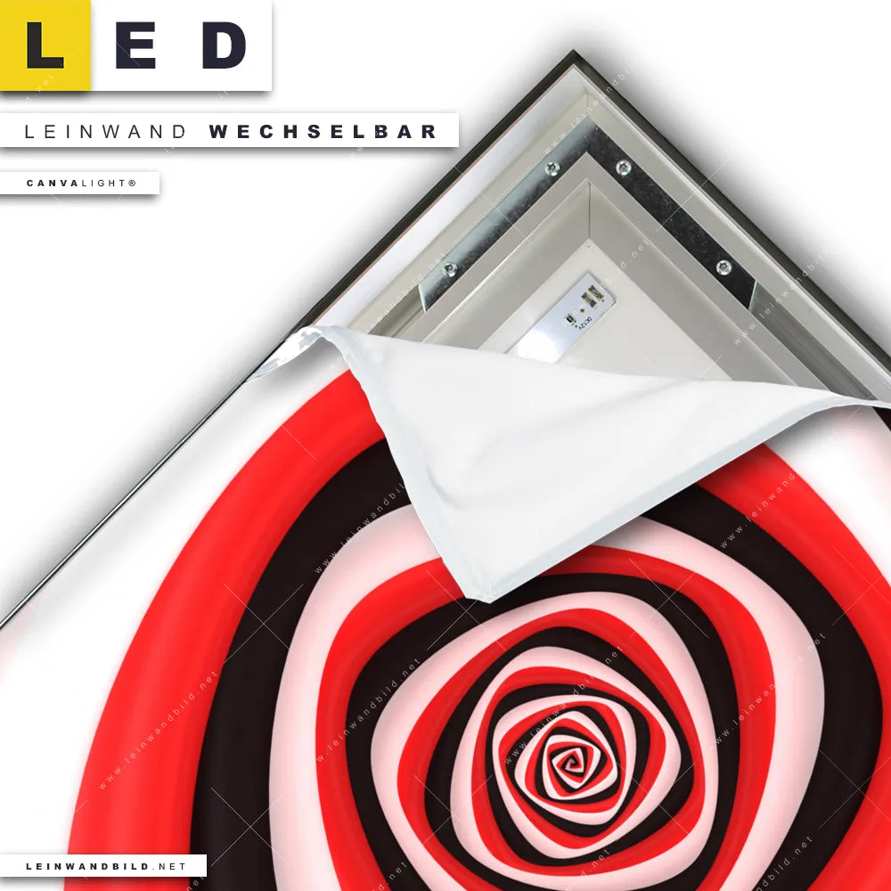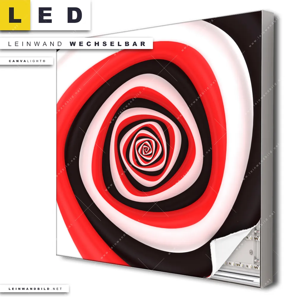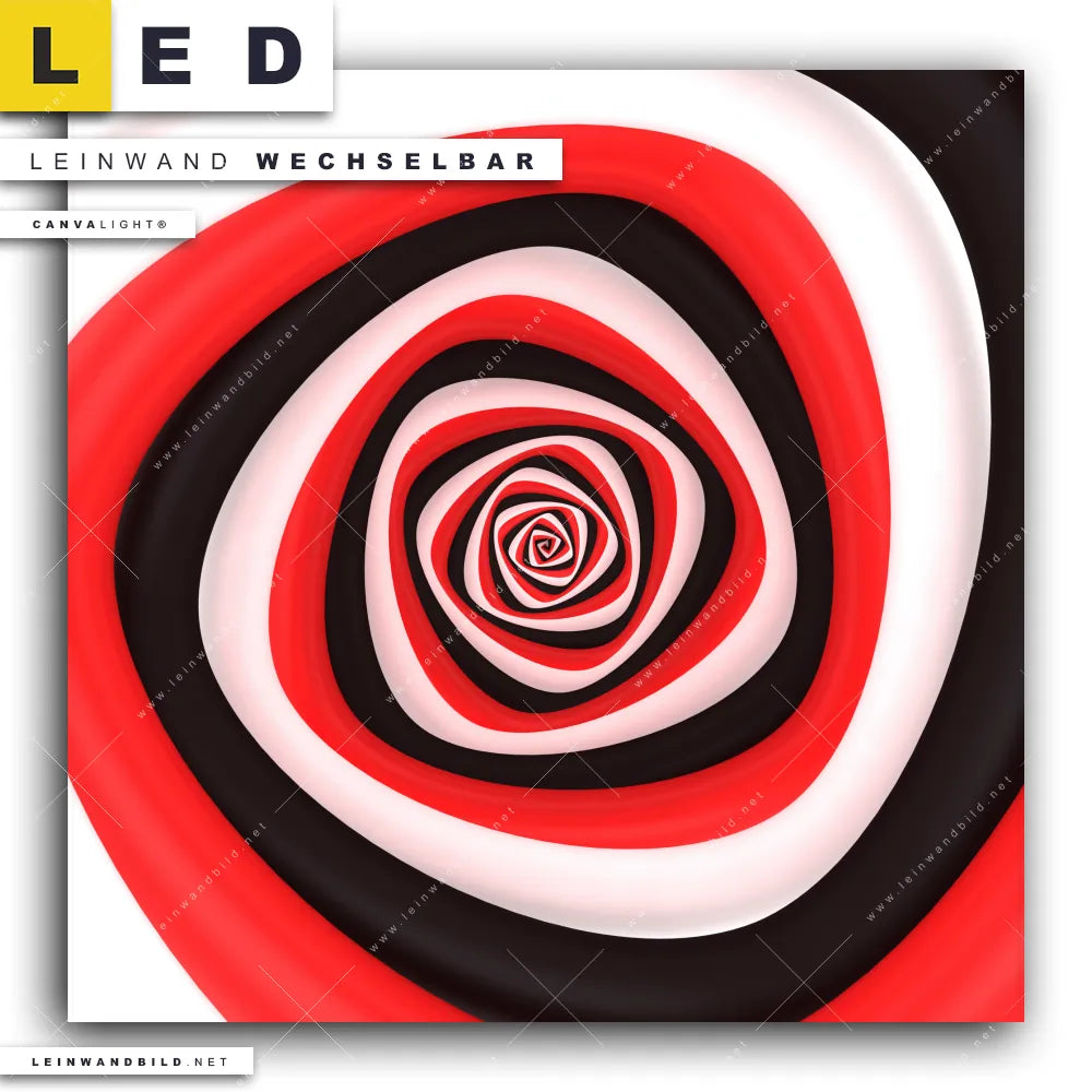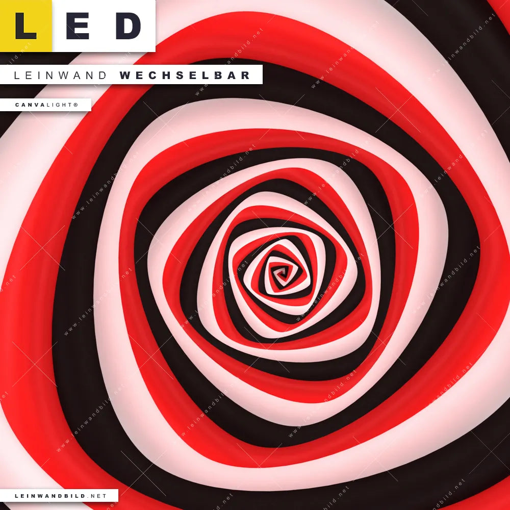 LED Leinwandbild Canvalight® TEX | Spirale in rot weiß schwarz | Quadrat
