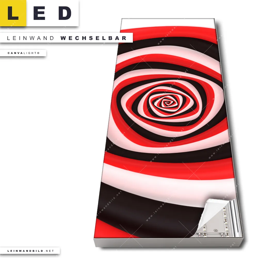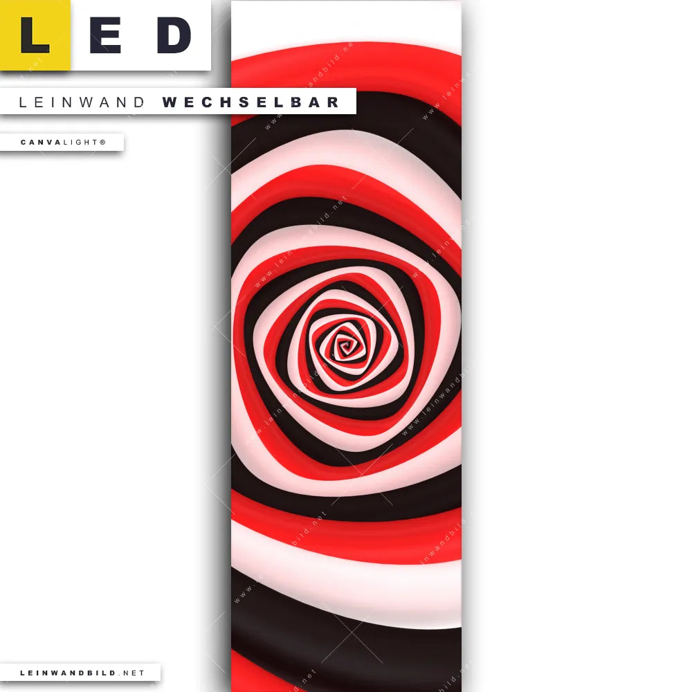 LED Leinwandbild Canvalight® TEX | Spirale in rot weiß schwarz | Schmal