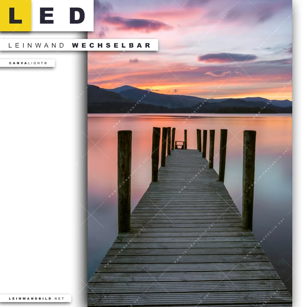 Du konfigurierst Dein individuelles LED Leinwandbild Canvalight® TEX | Steg in den Sonnenuntergang | Hochformat und wir produzieren es NEU für Dich. Unsere Strand - Meer, Landschaften LED Bilder mit wechselbarer Textil-Leinwand sind KEINE Lagerware. Du bist Dir unsicher, welches Motiv oder Format das richtige für dein individuelles Canvalight® Leuchtbild ist, dann helfen wir dir gerne weiter und beraten dich!