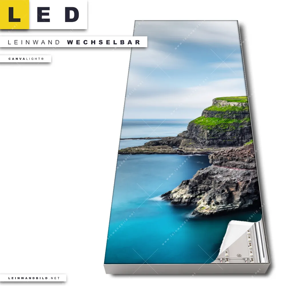Du konfigurierst Dein individuelles LED Leinwandbild Canvalight® TEX | Steilküste am Meer | Schmal und wir produzieren es NEU für Dich. Unsere Landschaften, Strand - Meer LED Bilder mit wechselbarer Textil-Leinwand sind KEINE Lagerware. Du bist Dir unsicher, welches Motiv oder Format das richtige für dein individuelles Canvalight® Leuchtbild ist, dann helfen wir dir gerne weiter und beraten dich!