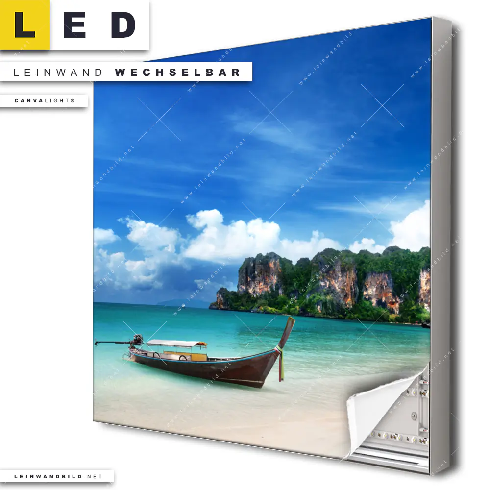 Du konfigurierst Dein individuelles LED Leinwandbild Canvalight® TEX | Strand in Thailand | Quadrat und wir produzieren es NEU für Dich. Unsere Landschaften, Strand - Meer LED Bilder mit wechselbarer Textil-Leinwand sind KEINE Lagerware. Du bist Dir unsicher, welches Motiv oder Format das richtige für dein individuelles Canvalight® Leuchtbild ist, dann helfen wir dir gerne weiter und beraten dich!