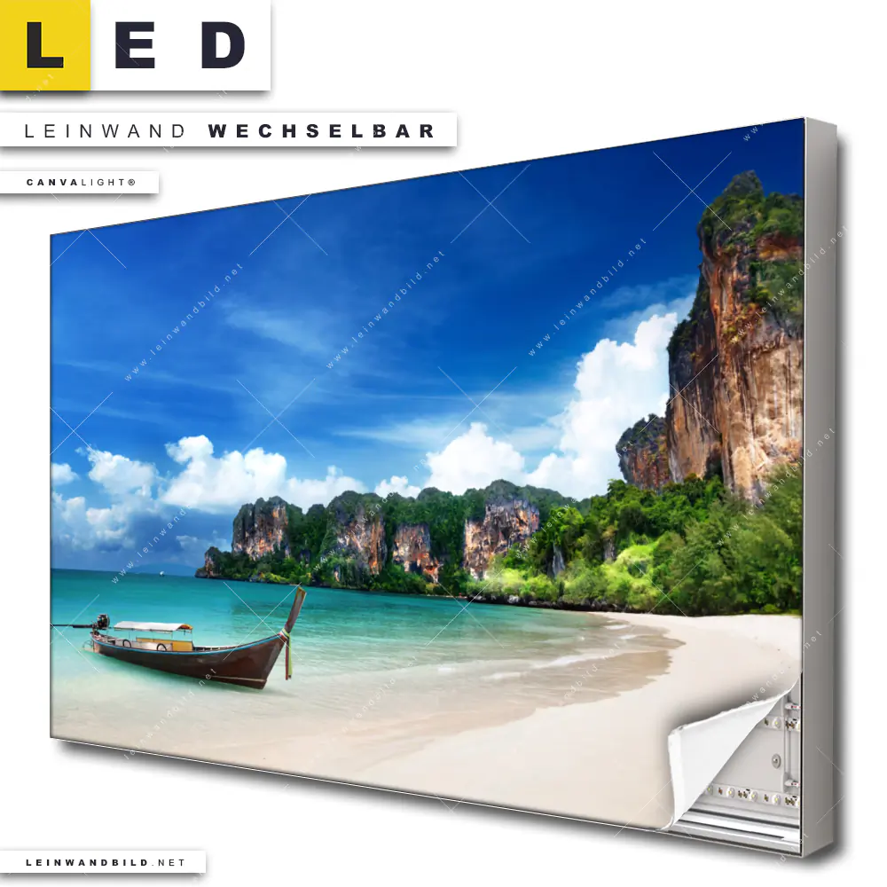 Du konfigurierst Dein individuelles LED Leinwandbild Canvalight® TEX | Strand in Thailand | Querformat und wir produzieren es NEU für Dich. Unsere Landschaften, Strand - Meer LED Bilder mit wechselbarer Textil-Leinwand sind KEINE Lagerware. Du bist Dir unsicher, welches Motiv oder Format das richtige für dein individuelles Canvalight® Leuchtbild ist, dann helfen wir dir gerne weiter und beraten dich!