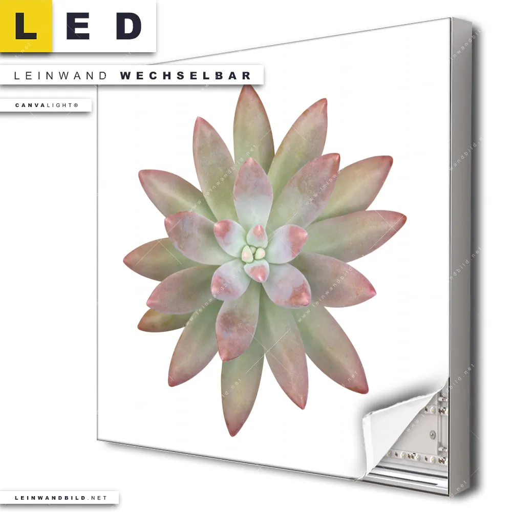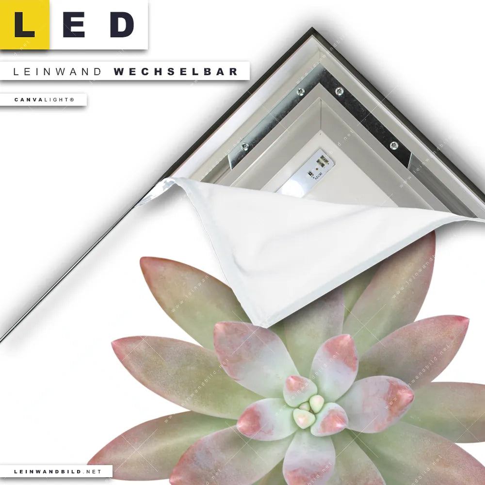 Du konfigurierst Dein individuelles LED Leinwandbild Canvalight® TEX | Sukkulente No.1 | Quadrat und wir produzieren es NEU für Dich. Unsere Blumen - Botanik LED Bilder mit wechselbarer Textil-Leinwand sind KEINE Lagerware. Du bist Dir unsicher, welches Motiv oder Format das richtige für dein individuelles Canvalight® Leuchtbild ist, dann helfen wir dir gerne weiter und beraten dich!