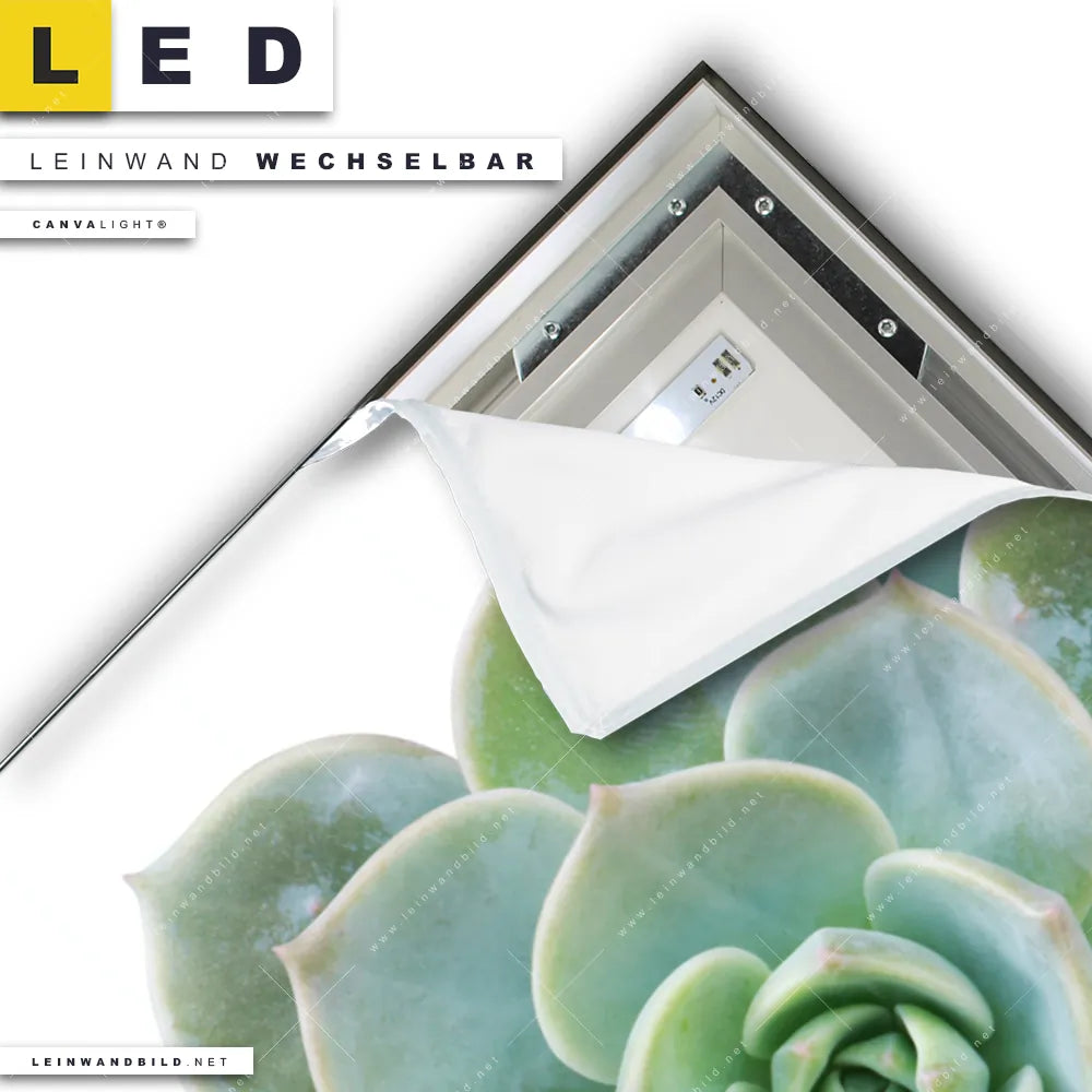 Du konfigurierst Dein individuelles LED Leinwandbild Canvalight® TEX | Sukkulente No.3 | Hochformat und wir produzieren es NEU für Dich. Unsere Blumen - Botanik, Muster - Texturen LED Bilder mit wechselbarer Textil-Leinwand sind KEINE Lagerware. Du bist Dir unsicher, welches Motiv oder Format das richtige für dein individuelles Canvalight® Leuchtbild ist, dann helfen wir dir gerne weiter und beraten dich!