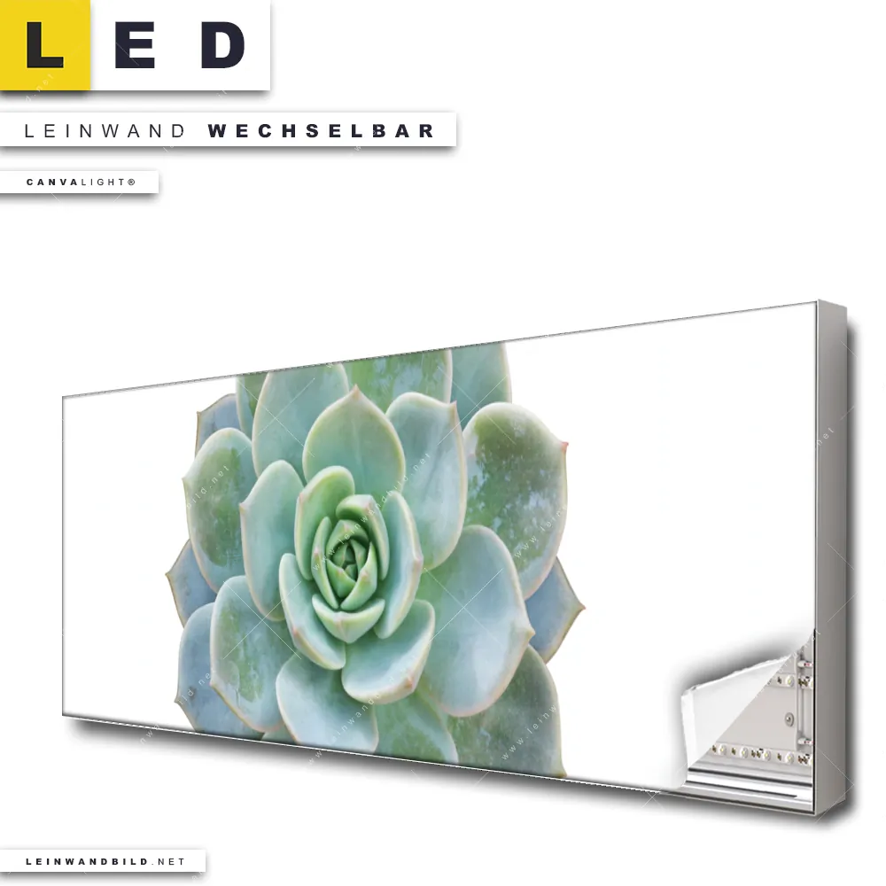 Du konfigurierst Dein individuelles LED Leinwandbild Canvalight® TEX | Sukkulente No.3 | Panorama und wir produzieren es NEU für Dich. Unsere Blumen - Botanik, Muster - Texturen LED Bilder mit wechselbarer Textil-Leinwand sind KEINE Lagerware. Du bist Dir unsicher, welches Motiv oder Format das richtige für dein individuelles Canvalight® Leuchtbild ist, dann helfen wir dir gerne weiter und beraten dich!