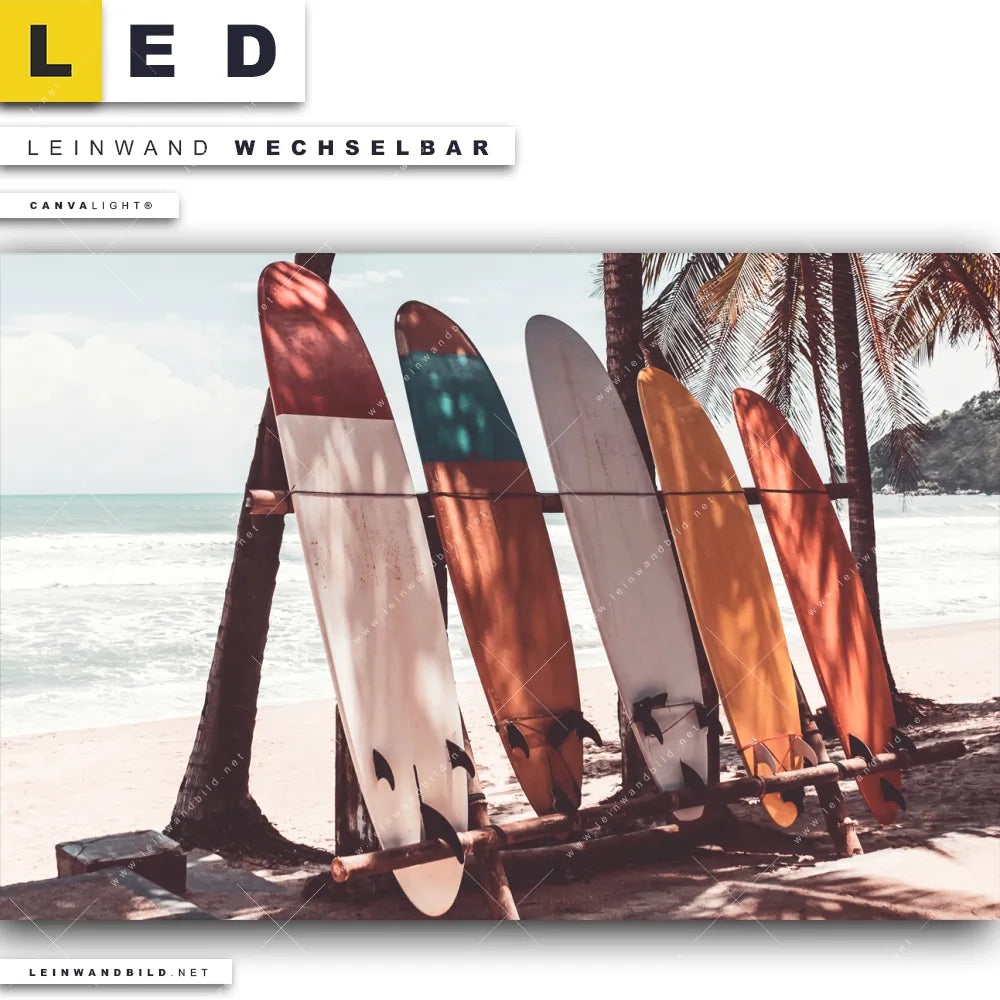 LED Leinwandbild Canvalight® TEX | Surfbretter und Palmen | Querformat