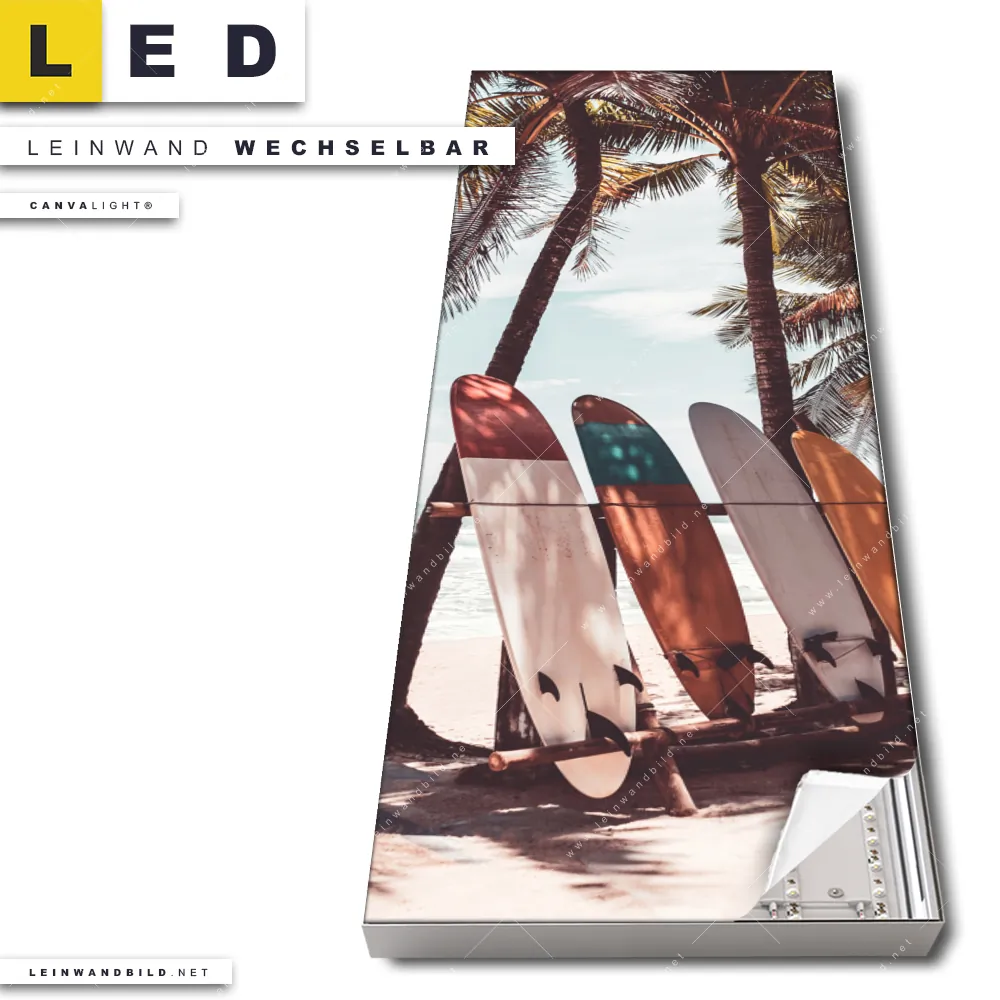 LED Leinwandbild Canvalight® TEX | Surfbretter und Palmen | Schmal