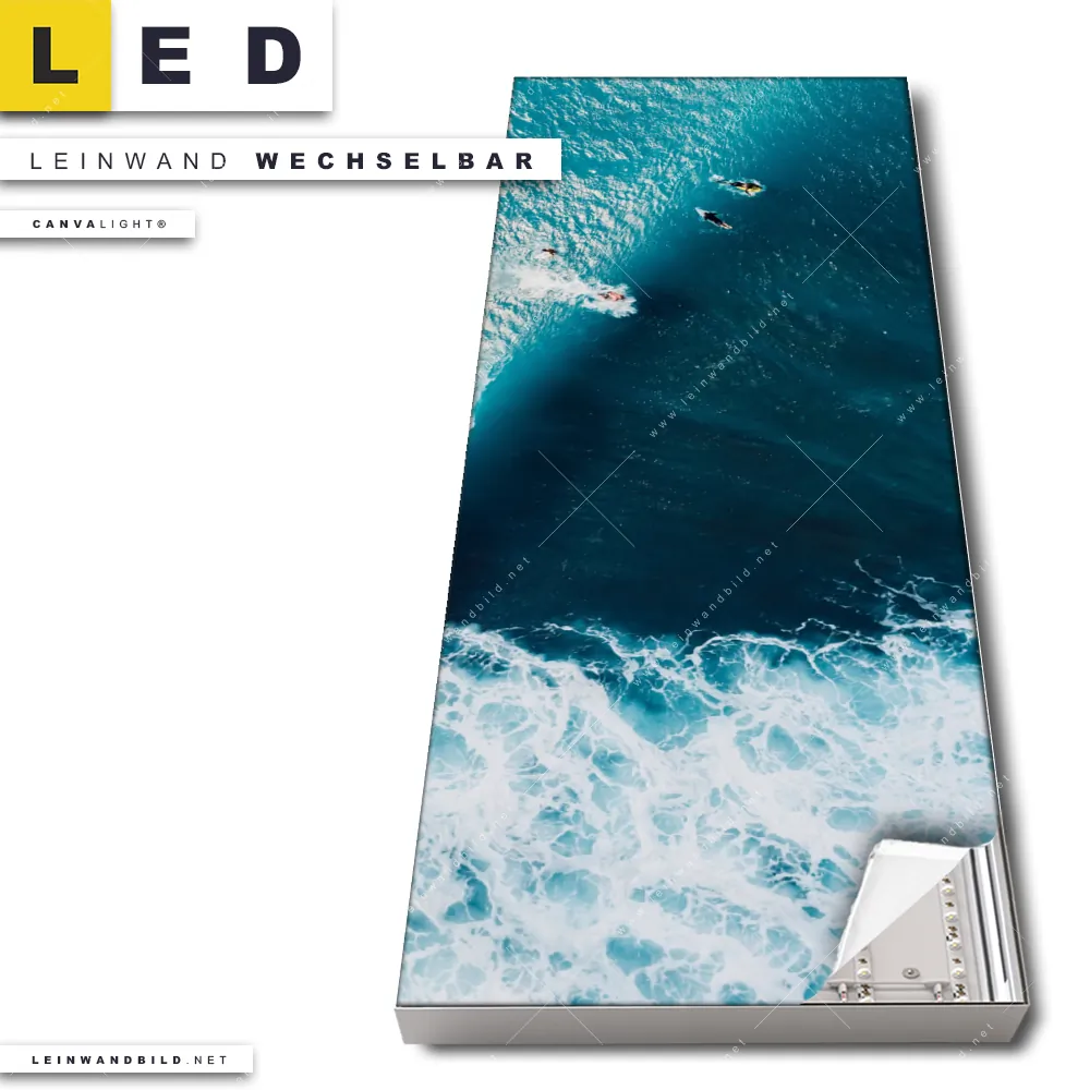 Du konfigurierst Dein individuelles LED Leinwandbild Canvalight® TEX | Surfer Welle | Schmal und wir produzieren es NEU für Dich. Unsere Strand - Meer LED Bilder mit wechselbarer Textil-Leinwand sind KEINE Lagerware. Du bist Dir unsicher, welches Motiv oder Format das richtige für dein individuelles Canvalight® Leuchtbild ist, dann helfen wir dir gerne weiter und beraten dich!