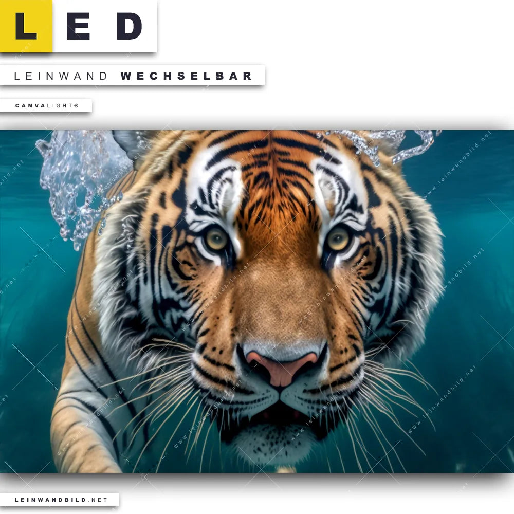 Du bist auf der Suche nach einem Tierwelt LED Leinwandbild im Querformat? Begriffe wie Raubkatze, Tiger, Afrika, Dschungel, Wasser, Unterwasser, Wildkatze, tauchen, schwimmen haben Dich auf der Suche nach Deinem neuen XXL LED Wandbild mit wechselbarer Leinwand inspiriert? Farben wie Beige, Blau, Braun dürfen auf Deinem neuen breiten Leinwand-LED-Bild nicht fehlen und Leuchtbilder im Modern Art Stil passen perfekt zu Deinem Einrichtungsstil?