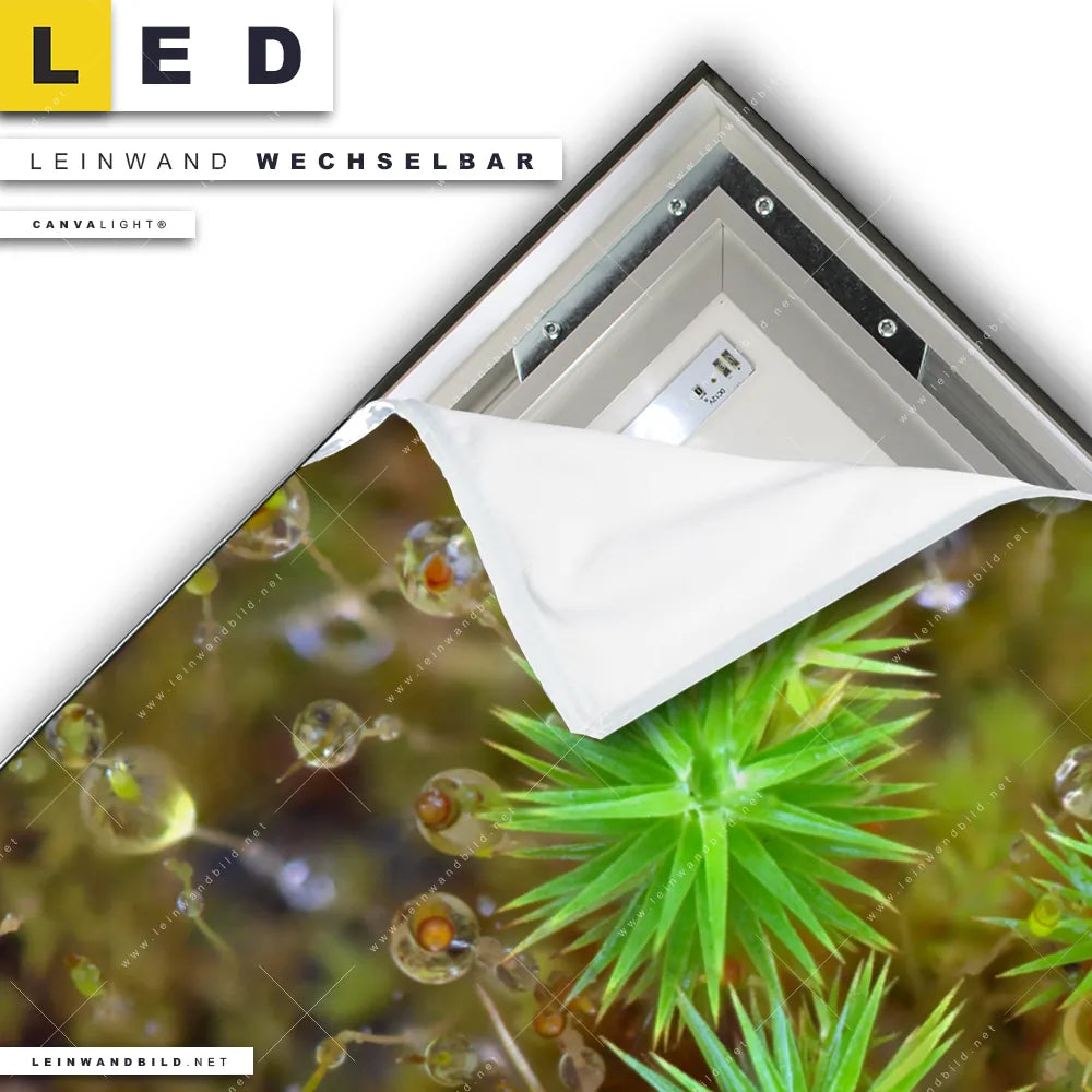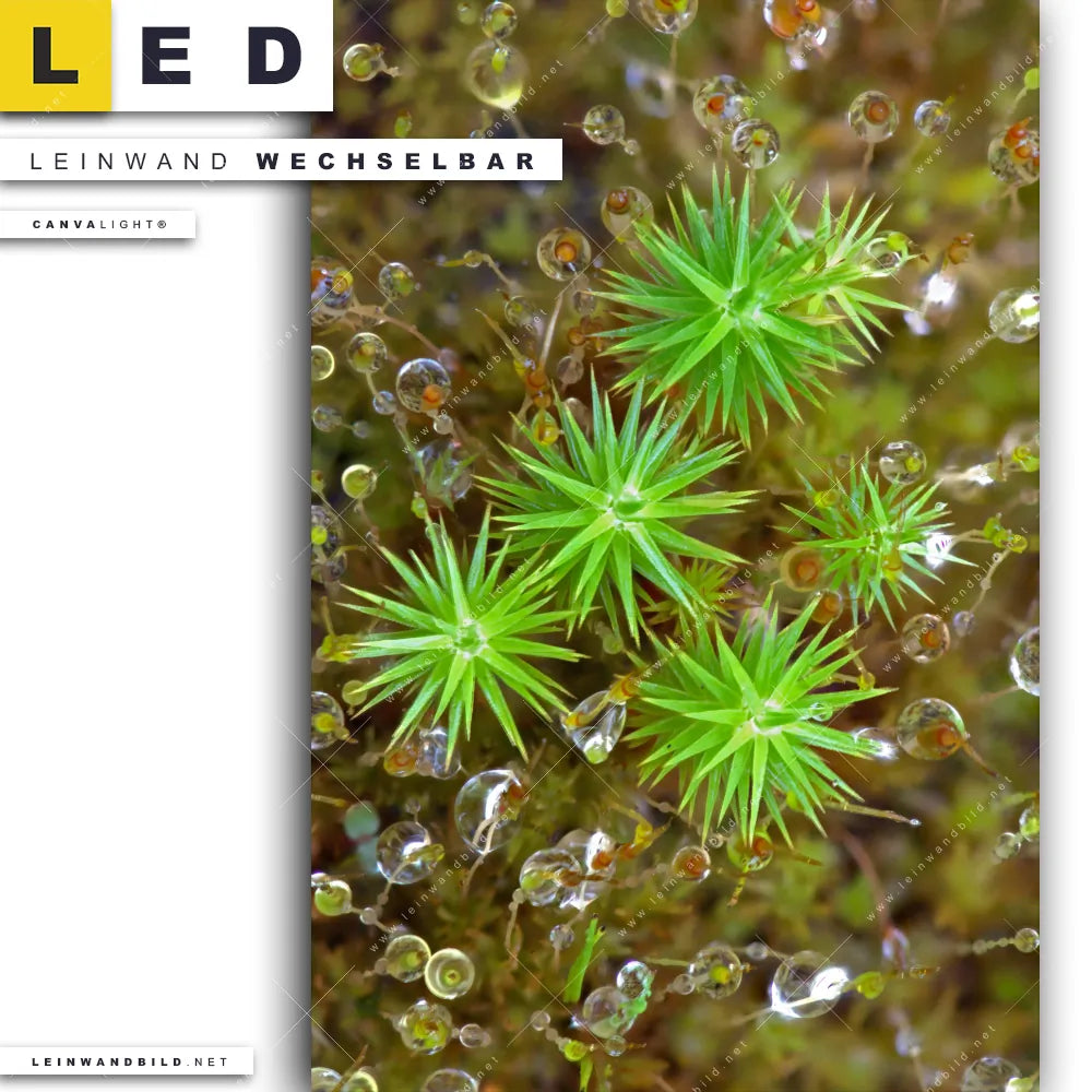 LED Leinwandbild Canvalight® TEX | Tautropfen auf Moos | Hochformat
