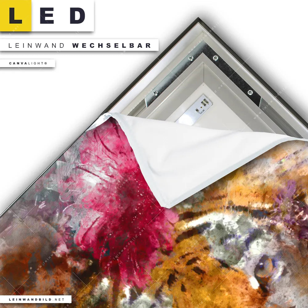 LED Leinwandbild Canvalight® TEX | Tiger & Blumen | Hochformat