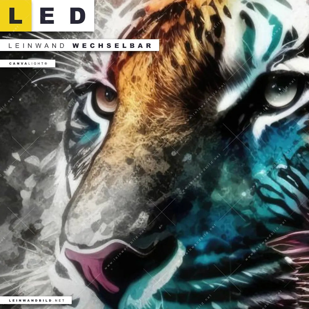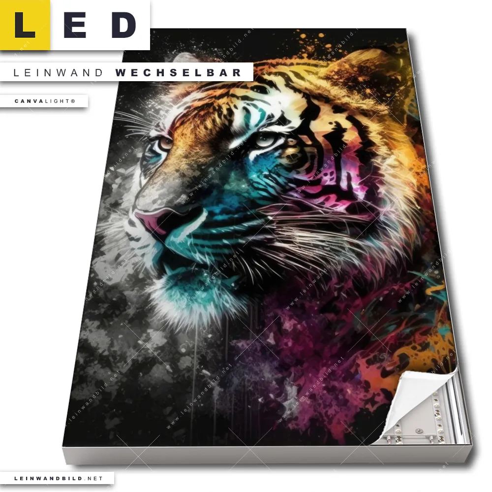 LED Leinwandbild Canvalight® TEX | Tiger im Farbrausch | Hochformat