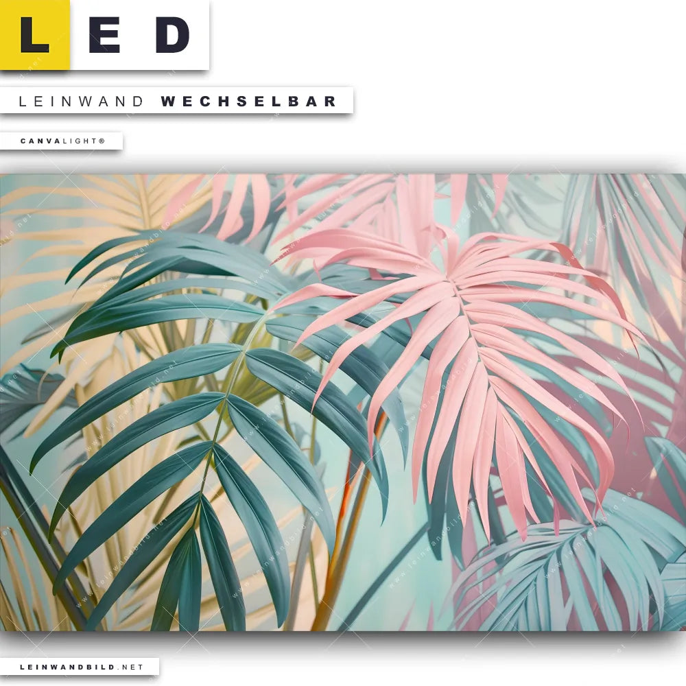 LED Leinwandbild Canvalight® TEX | Tropische Blätter in Pastellfarben | Querformat