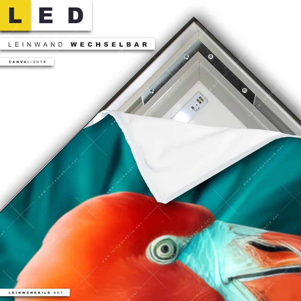 Du konfigurierst Dein individuelles LED Leinwandbild Canvalight® TEX | Tropischer Flamingo Traum | Schmal und wir produzieren es NEU für Dich. Unsere Tierwelt, Blumen - Botanik LED Bilder mit wechselbarer Textil-Leinwand sind KEINE Lagerware. Du bist Dir unsicher, welches Motiv oder Format das richtige für dein individuelles Canvalight® Leuchtbild ist, dann helfen wir dir gerne weiter und beraten dich!