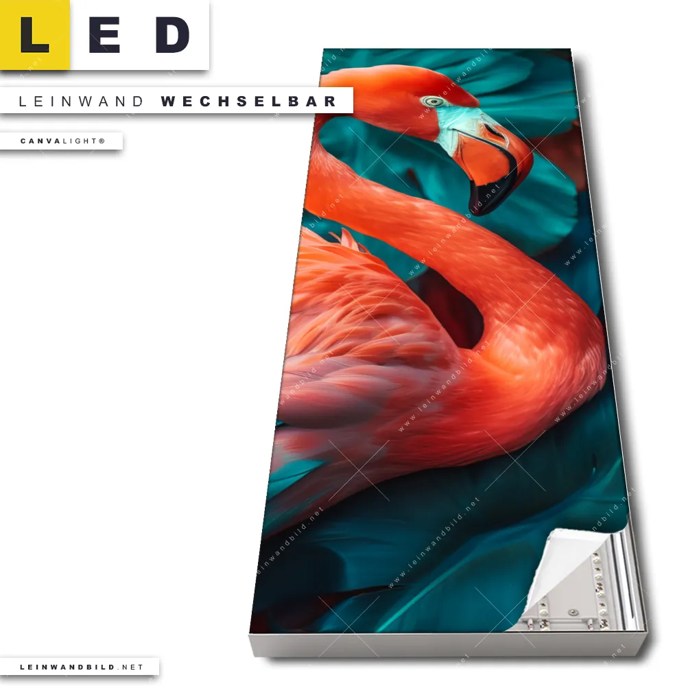 LED Leinwandbild Canvalight® TEX | Tropischer Flamingo Traum | Schmal