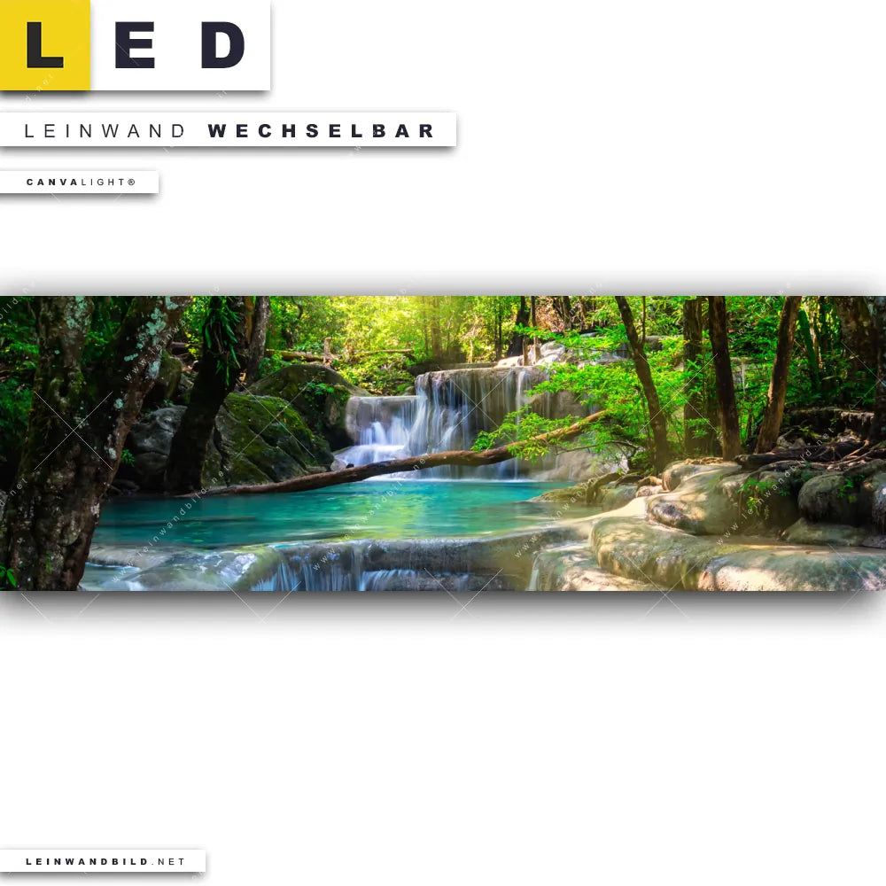 LED Leinwandbild Canvalight® TEX | Tropischer Wasserfall | Panorama
