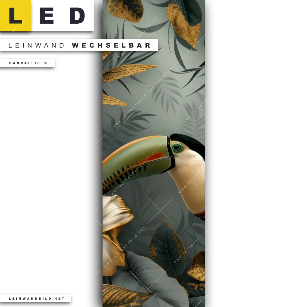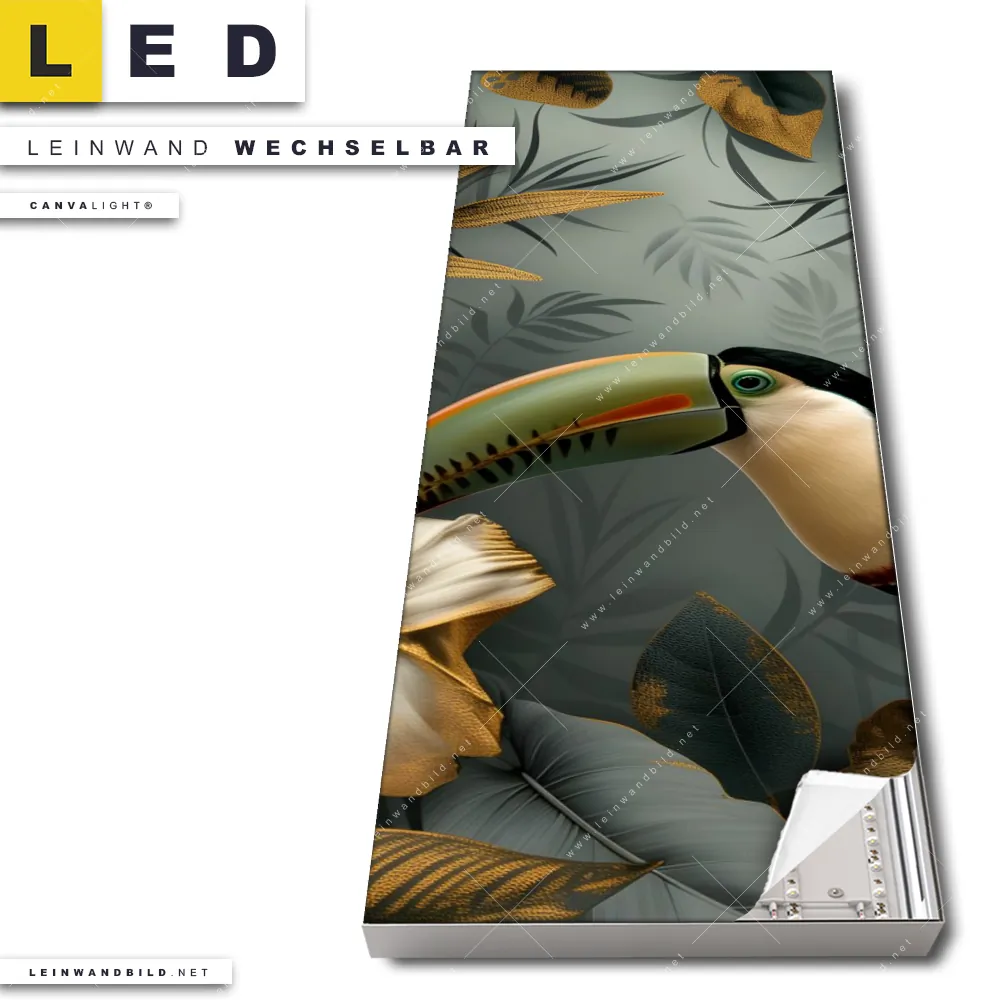LED Leinwandbild Canvalight® TEX | Tukan im goldenen Regenwald | Schmal