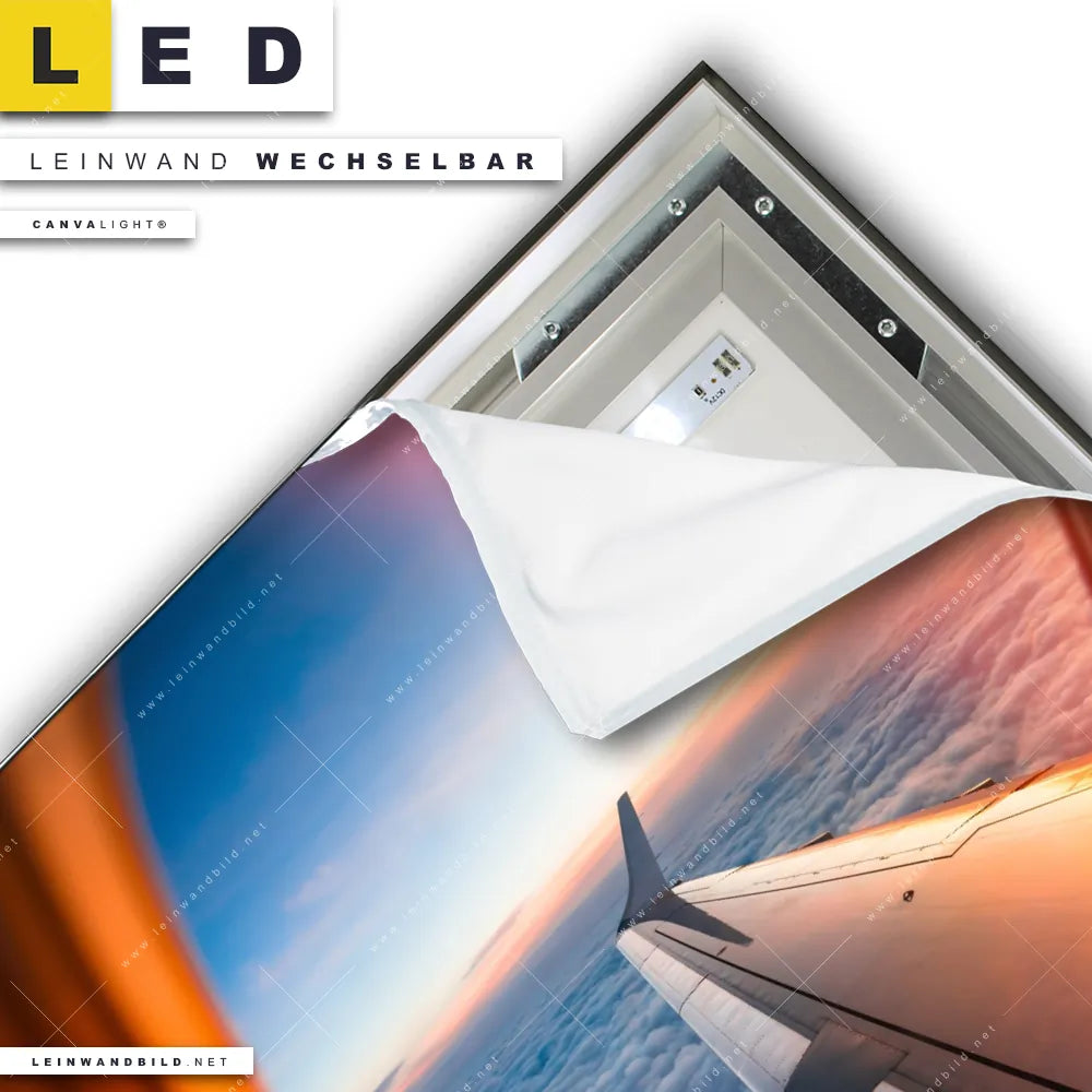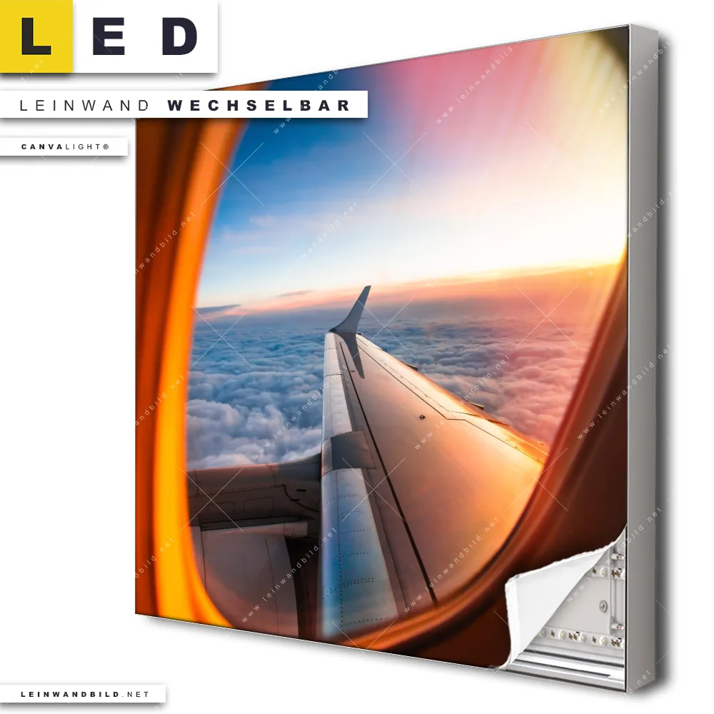 Du bist auf der Suche nach einem Fensterblick LED Leinwandbild im Quadratischen Format? Begriffe wie Urlaub, Reisen, Wolken, Flugzeug, fliegen, Fensterblick, über den Wolken haben Dich auf der Suche nach Deinem neuen XXL LED Wandbild mit wechselbarer Leinwand inspiriert? Farben wie Blau, Orange dürfen auf Deinem neuen Leinwand-LED-Bild nicht fehlen und Leuchtbilder im Natürlich - Realistisch Stil passen perfekt zu Deinem Einrichtungsstil?