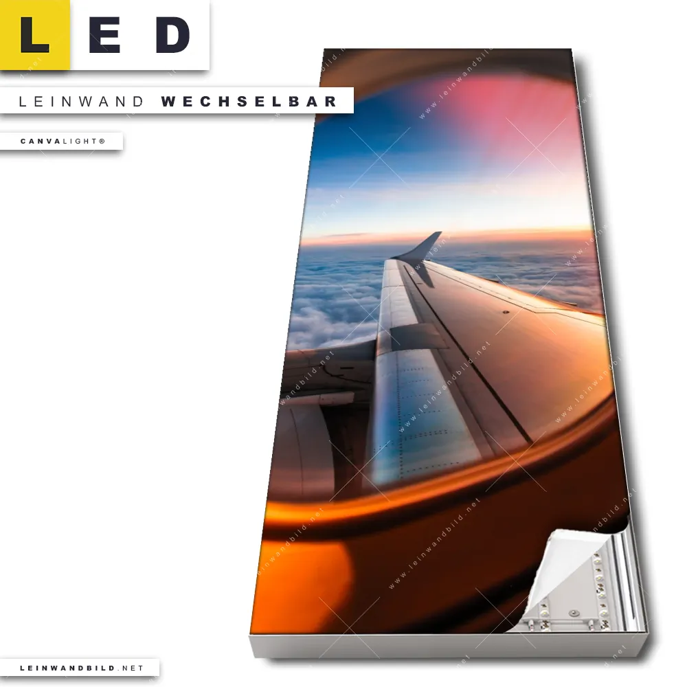 Du bist auf der Suche nach einem Fensterblick LED Leinwandbild im Schmalen Format? Begriffe wie Urlaub, Reisen, Wolken, Flugzeug, fliegen, Fensterblick, über den Wolken haben Dich auf der Suche nach Deinem neuen XXL LED Wandbild mit wechselbarer Leinwand inspiriert? Farben wie Blau, Orange dürfen auf Deinem neuen Leinwand-LED-Bild im Panorama-Hochformat nicht fehlen und Leuchtbilder im Natürlich - Realistisch Stil passen perfekt zu Deinem Einrichtungsstil?