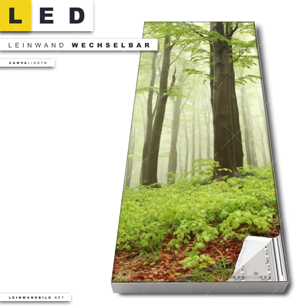 Du bist auf der Suche nach einem Landschaften, Wald - Bäume LED Leinwandbild im Schmalen Format? Begriffe wie Wald, Baum, Natur, Licht, Bäume, Laubwald, Baumstämme, Buchen, Nebel haben Dich auf der Suche nach Deinem neuen XXL LED Wandbild mit wechselbarer Leinwand inspiriert? Farben wie Grün, Braun, Hellgrün, Beige dürfen auf Deinem neuen Leinwand-LED-Bild im Panorama-Hochformat nicht fehlen und Leuchtbilder im Natürlich - Realistisch Stil passen perfekt zu Deinem Einrichtungsstil?