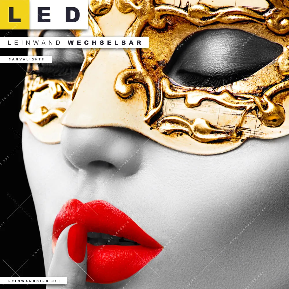 Dann sollte das LED Leinwandbild Canvalight® TEX | Unser Geheimnis | Panorama den Weg zu Dir finden. Das stufenlos dimmbare Leinwandbild Maskenball im steckerfertigen Leuchtrahmen mit Fernbedienung und optionaler Farbtemperatursteuerung fügt sich als Eye-Catcher harmonisch in jedes Bar - Gastronomie, Flur - Eingangsbereich, Friseur - Beauty, Wohnzimmer - Schlafzimmer Raumkonzept ein.