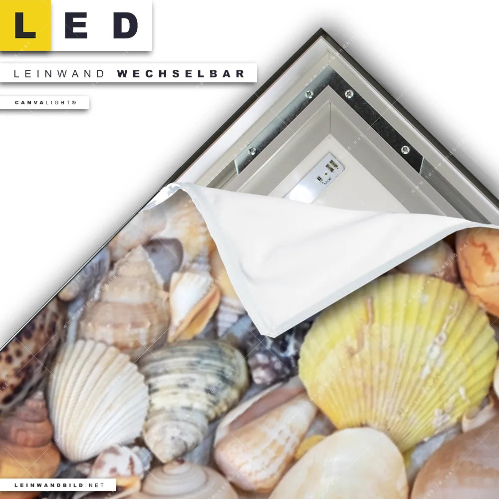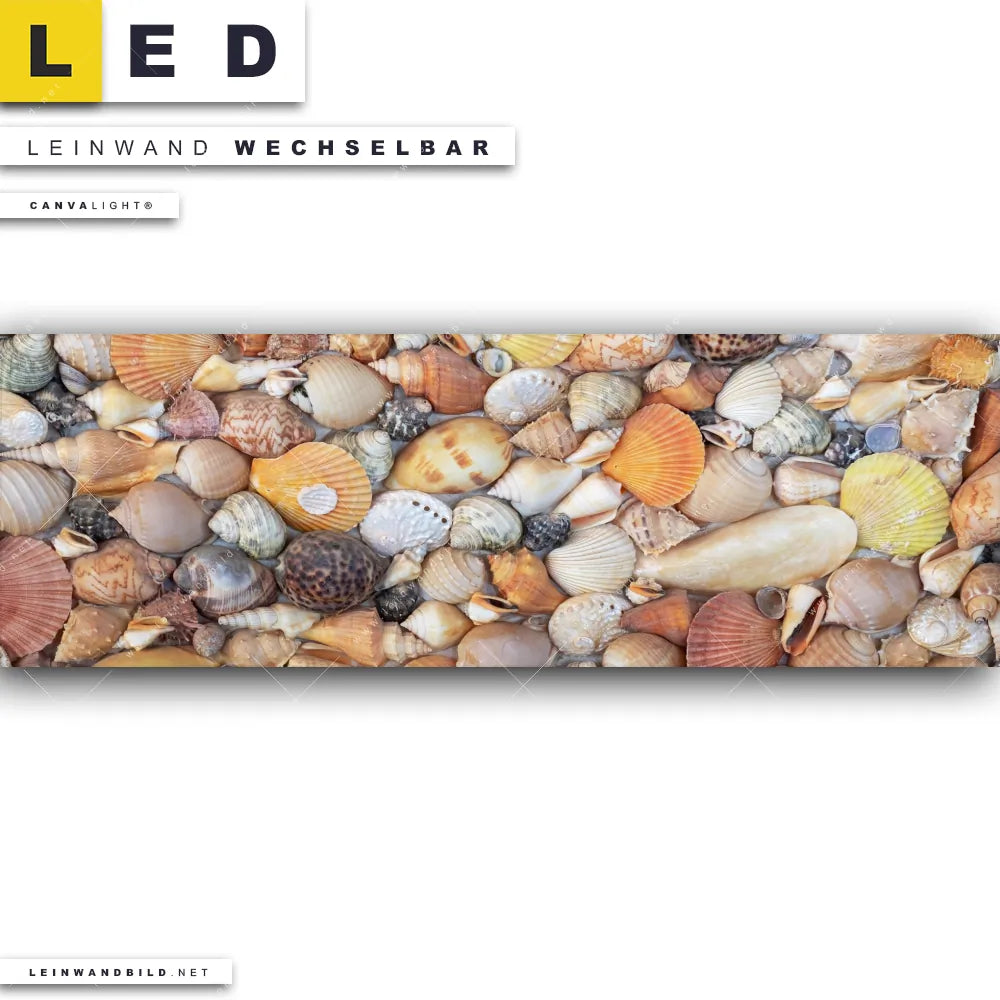 LED Leinwandbild Canvalight® TEX | Viele Muscheln | Panorama