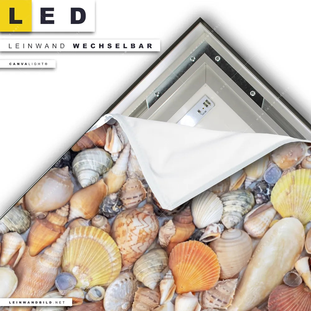 LED Leinwandbild Canvalight® TEX | Viele Muscheln | Querformat