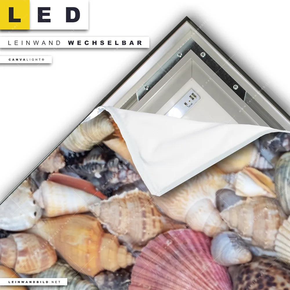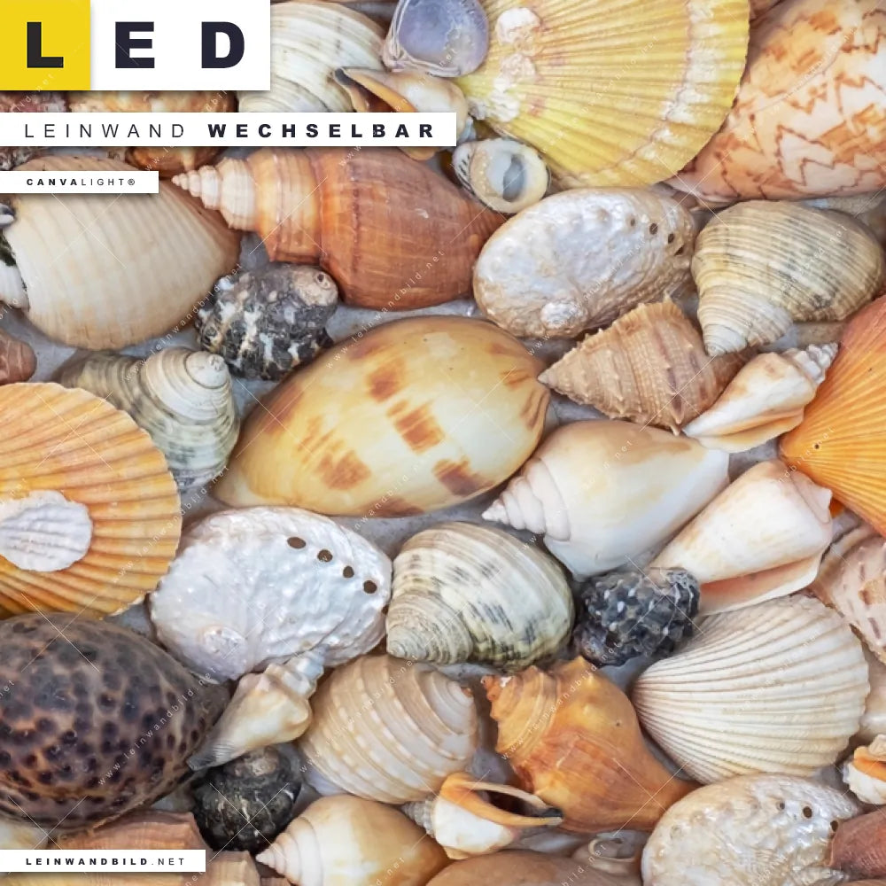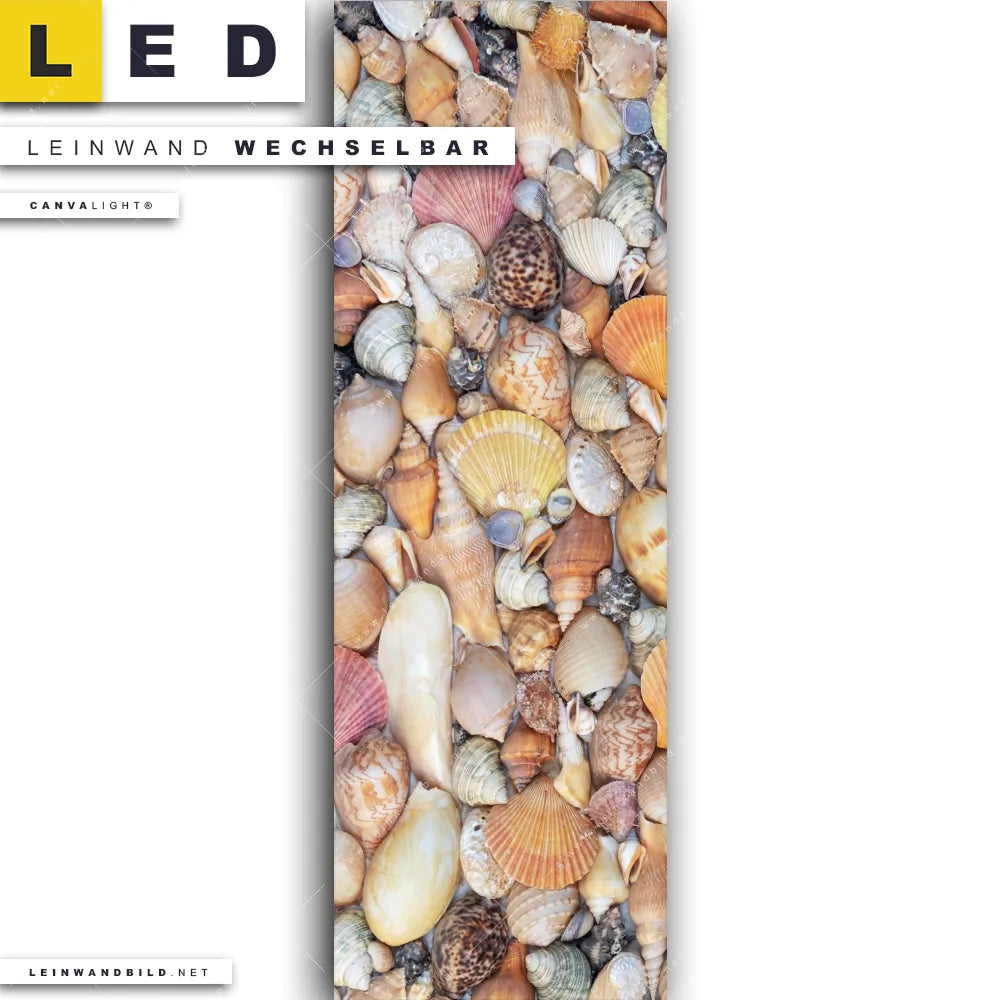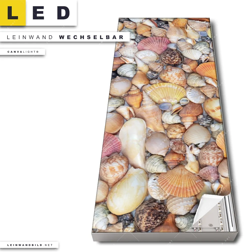 LED Leinwandbild Canvalight® TEX | Viele Muscheln | Schmal