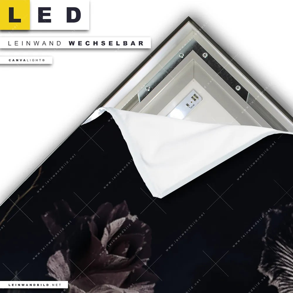 Du konfigurierst Dein individuelles LED Leinwandbild Canvalight® TEX | Vintage Blumen | Panorama und wir produzieren es NEU für Dich. Unsere Blumen - Botanik LED Bilder mit wechselbarer Textil-Leinwand sind KEINE Lagerware. Du bist Dir unsicher, welches Motiv oder Format das richtige für dein individuelles Canvalight® Leuchtbild ist, dann helfen wir dir gerne weiter und beraten dich!