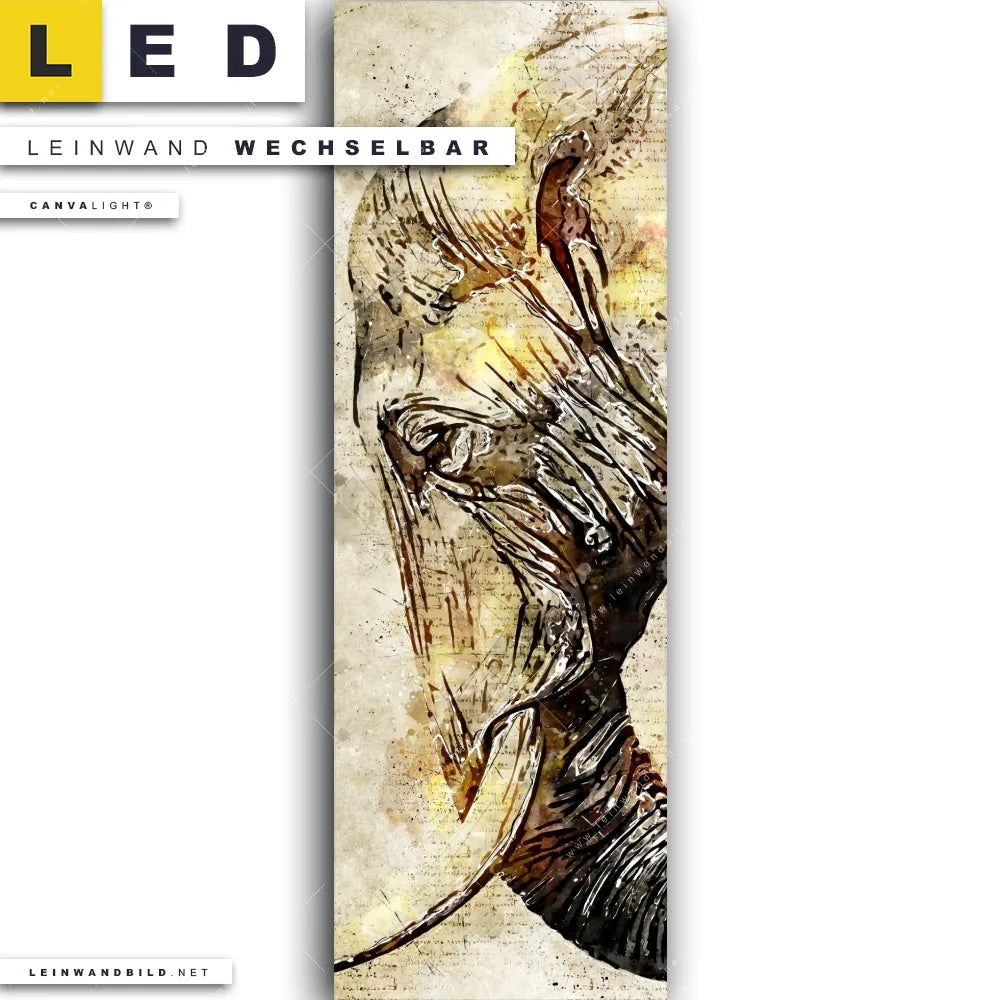Du bist auf der Suche nach einem Tierwelt LED Leinwandbild im Schmalen Format? Begriffe wie Elefant, Afrika, wild, Safari, Aquarell, Dschungel haben Dich auf der Suche nach Deinem neuen XXL LED Wandbild mit wechselbarer Leinwand inspiriert? Farben wie Braun, Beige dürfen auf Deinem neuen Leinwand-LED-Bild im Panorama-Hochformat nicht fehlen und Leuchtbilder im Grunge, Modern Art, Retro - Vintage Stil passen perfekt zu Deinem Einrichtungsstil?