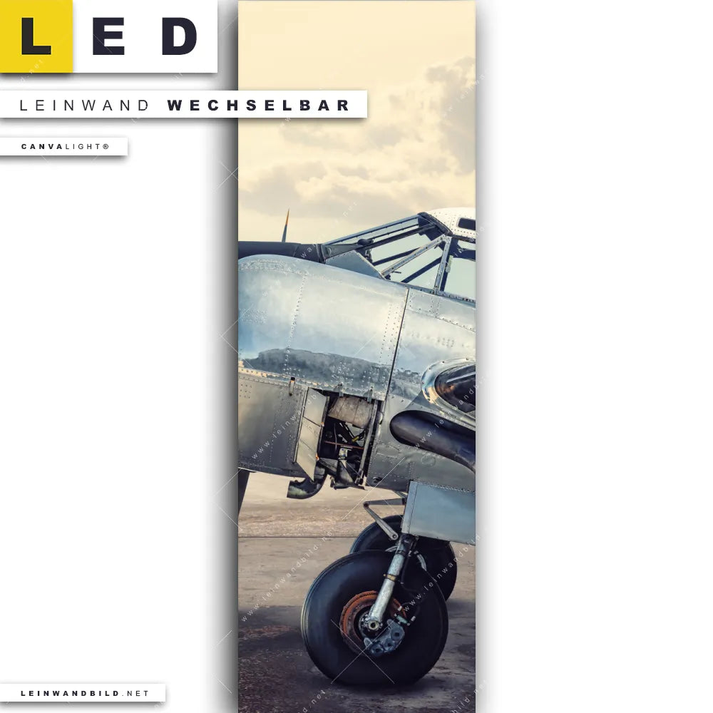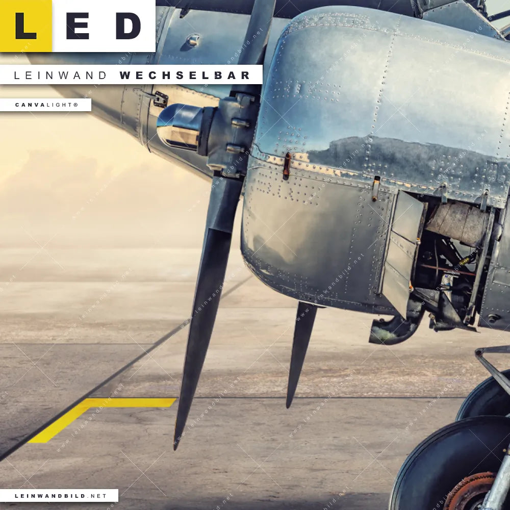 LED Leinwandbild Canvalight® TEX | Vintage Flugzeug | Schmal