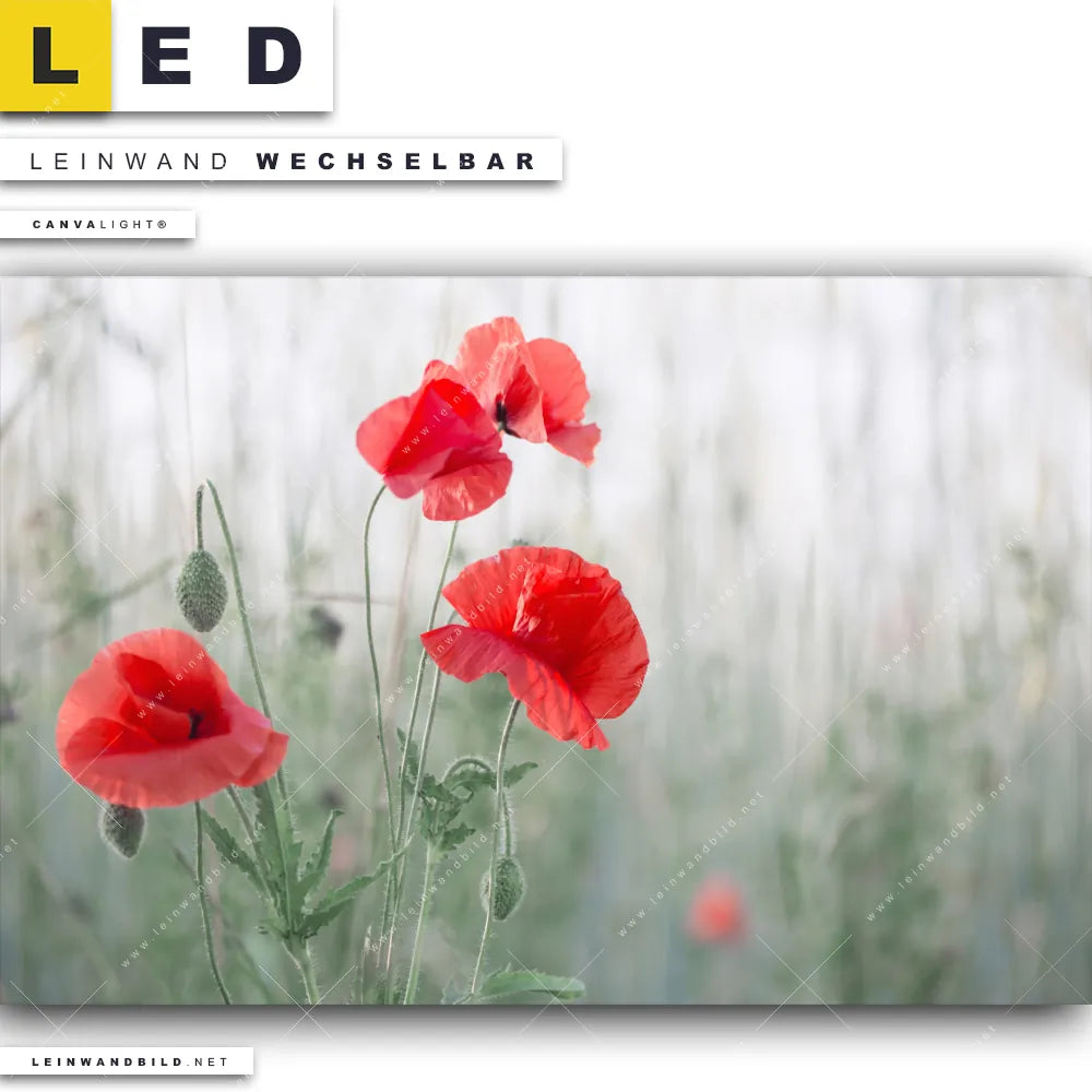 Du bist auf der Suche nach einem Blumen - Botanik LED Leinwandbild im Querformat? Begriffe wie Blume, Botanik, Pflanze, Natur, Mohn, Mohnblume, Wiese, Blüte, Blumen, Klatschmohn haben Dich auf der Suche nach Deinem neuen XXL LED Wandbild mit wechselbarer Leinwand inspiriert? Farben wie Grün, Rot, Weiss, Grau , Hellgrün dürfen auf Deinem neuen breiten Leinwand-LED-Bild nicht fehlen und Leuchtbilder im Floral, Natürlich - Realistisch Stil passen perfekt zu Deinem Einrichtungsstil?