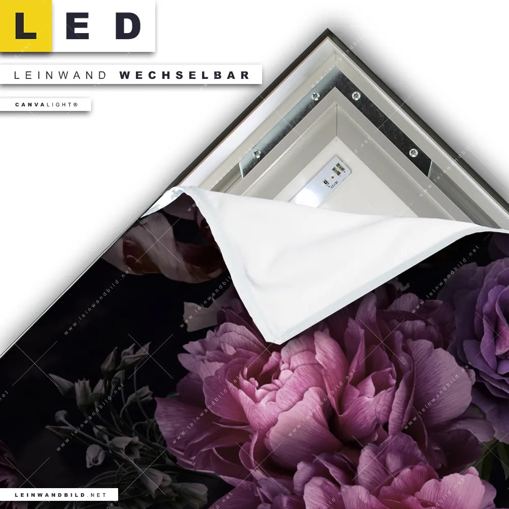Du konfigurierst Dein individuelles LED Leinwandbild Canvalight® TEX | Vintage Pfingstrosen | Quadrat und wir produzieren es NEU für Dich. Unsere Blumen - Botanik LED Bilder mit wechselbarer Textil-Leinwand sind KEINE Lagerware. Du bist Dir unsicher, welches Motiv oder Format das richtige für dein individuelles Canvalight® Leuchtbild ist, dann helfen wir dir gerne weiter und beraten dich!