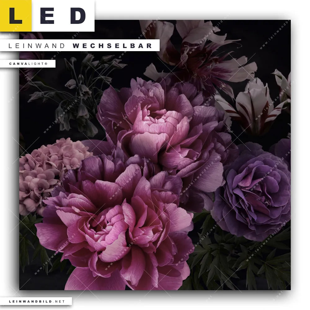 Du bist auf der Suche nach einem Blumen - Botanik LED Leinwandbild im Quadratischen Format? Begriffe wie Pflanze, Natur, Blüte, Nahaufnahme, Draufsicht, vintage, Blumen, Rosen, Blüten haben Dich auf der Suche nach Deinem neuen XXL LED Wandbild mit wechselbarer Leinwand inspiriert? Farben wie Schwarz, Lila, Pink, Rosa, Weiss dürfen auf Deinem neuen Leinwand-LED-Bild nicht fehlen und Leuchtbilder im Floral, Natürlich - Realistisch Stil passen perfekt zu Deinem Einrichtungsstil?