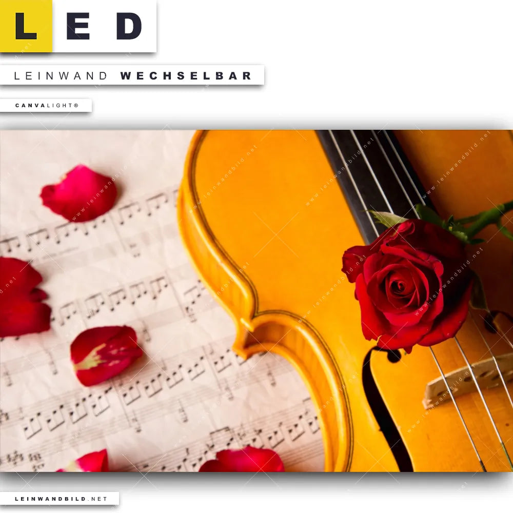 Du bist auf der Suche nach einem Blumen - Botanik LED Leinwandbild im Querformat? Begriffe wie Musik, Instrument, musikalisch, Blüte, Blume, Rose, Geige, Violine haben Dich auf der Suche nach Deinem neuen XXL LED Wandbild mit wechselbarer Leinwand inspiriert? Farben wie Rot, Beige, Braun dürfen auf Deinem neuen breiten Leinwand-LED-Bild nicht fehlen und Leuchtbilder im Floral, Natürlich - Realistisch Stil passen perfekt zu Deinem Einrichtungsstil?
