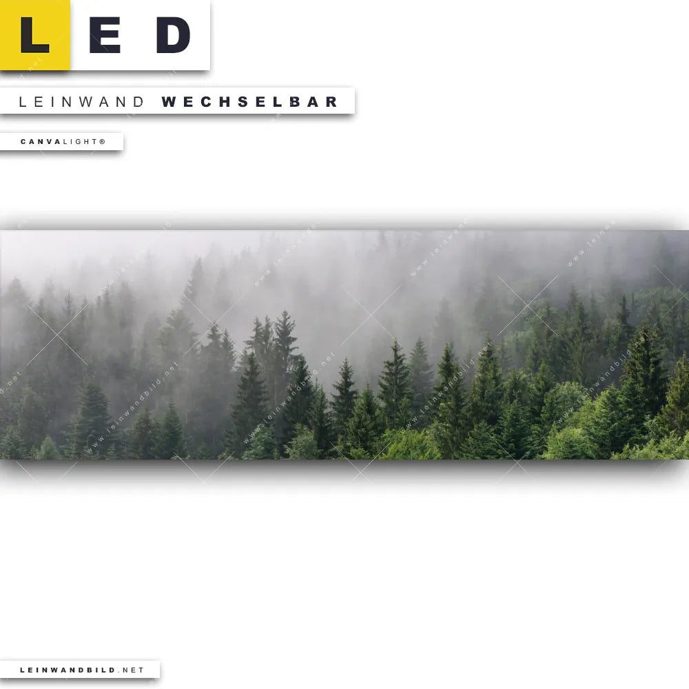 LED Leinwandbild Canvalight® TEX | Wald im Nebel | Panorama