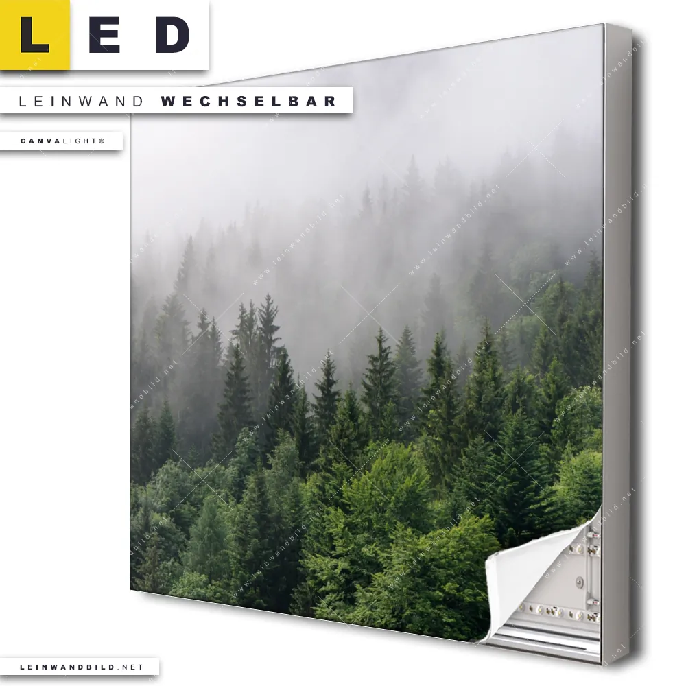 Du konfigurierst Dein individuelles LED Leinwandbild Canvalight® TEX | Wald im Nebel | Quadrat und wir produzieren es NEU für Dich. Unsere Landschaften, Wald - Bäume LED Bilder mit wechselbarer Textil-Leinwand sind KEINE Lagerware. Du bist Dir unsicher, welches Motiv oder Format das richtige für dein individuelles Canvalight® Leuchtbild ist, dann helfen wir dir gerne weiter und beraten dich!