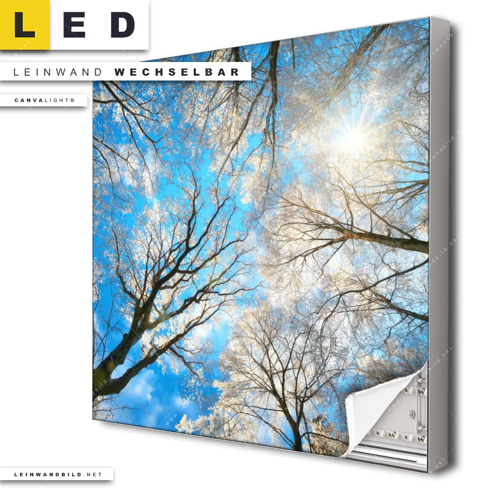 Du konfigurierst Dein individuelles LED Leinwandbild Canvalight® TEX | Wald im Winter | Quadrat und wir produzieren es NEU für Dich. Unsere Wald - Bäume LED Bilder mit wechselbarer Textil-Leinwand sind KEINE Lagerware. Du bist Dir unsicher, welches Motiv oder Format das richtige für dein individuelles Canvalight® Leuchtbild ist, dann helfen wir dir gerne weiter und beraten dich!