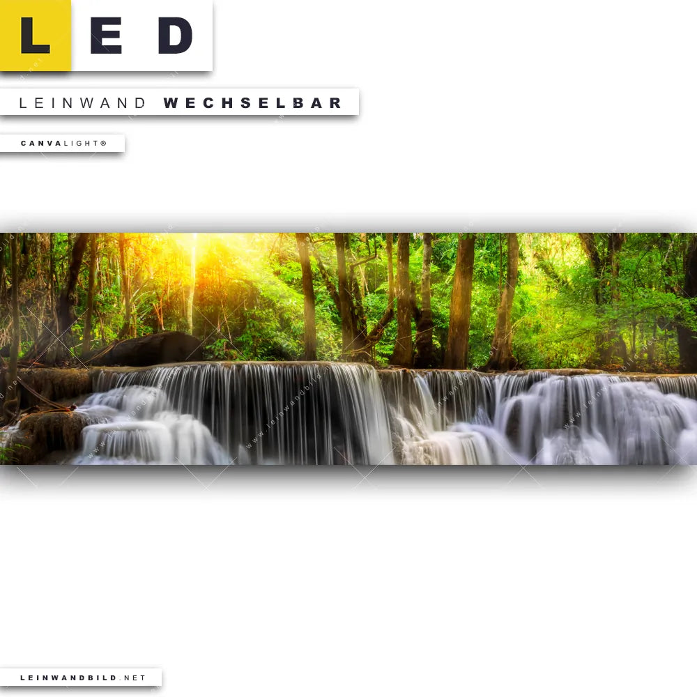 LED Leinwandbild Canvalight® TEX | Wald & Wasserfall No. 2 | Panorama