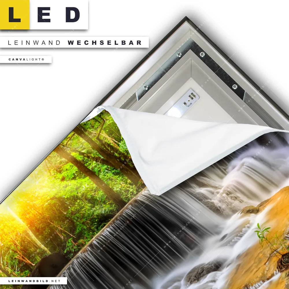 Du konfigurierst Dein individuelles LED Leinwandbild Canvalight® TEX | Wald & Wasserfall No. 2 | Quadrat und wir produzieren es NEU für Dich. Unsere Landschaften, Wald - Bäume LED Bilder mit wechselbarer Textil-Leinwand sind KEINE Lagerware. Du bist Dir unsicher, welches Motiv oder Format das richtige für dein individuelles Canvalight® Leuchtbild ist, dann helfen wir dir gerne weiter und beraten dich!