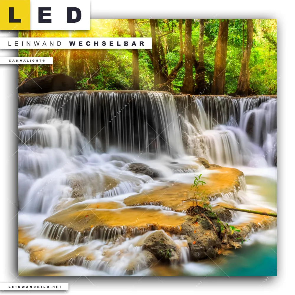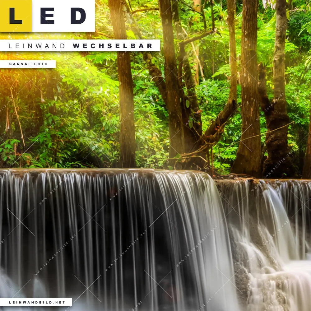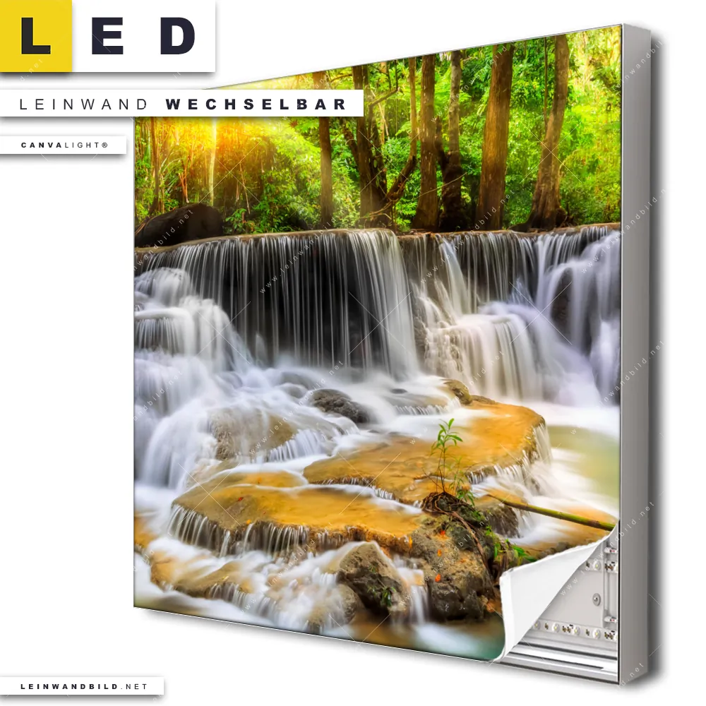 LED Leinwandbild Canvalight® TEX | Wald & Wasserfall No. 2 | Quadrat