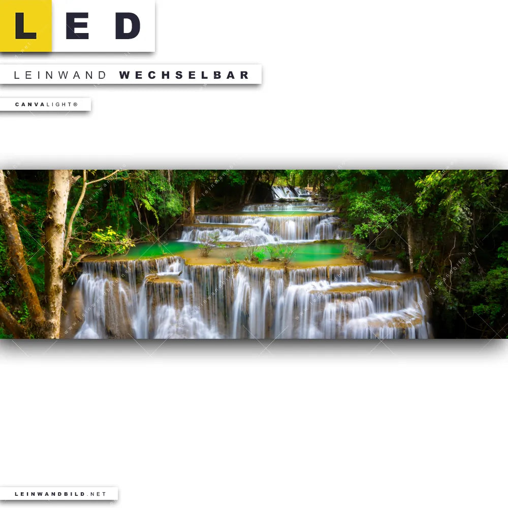 LED Leinwandbild Canvalight® TEX | Wald & Wasserfall No. 6 | Panorama