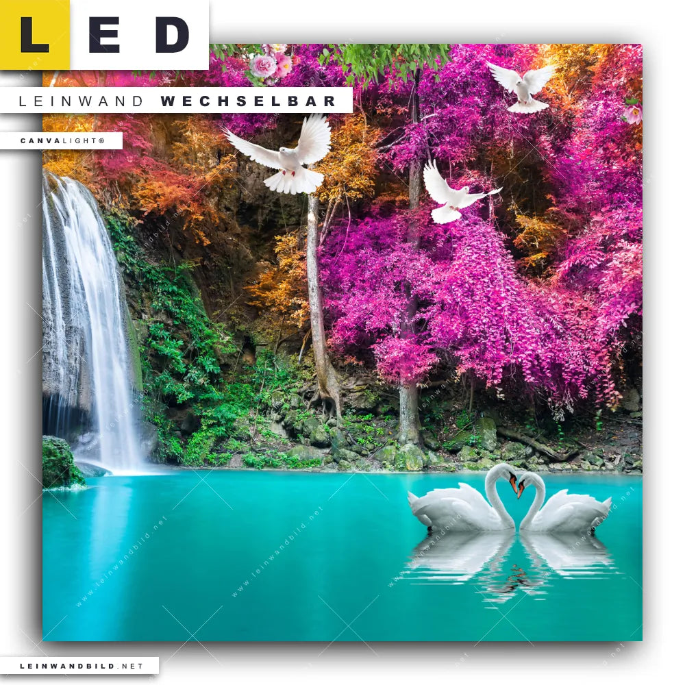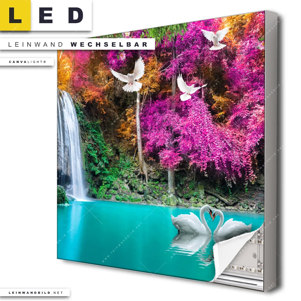 Du bist auf der Suche nach einem Landschaften LED Leinwandbild im Quadratischen Format? Begriffe wie Wald, Landschaft, Bäume, Natur, Baum, Ruhe, Stille, Wasserfall, Fluss, Tauben, Schwäne, See, Vögel haben Dich auf der Suche nach Deinem neuen XXL LED Wandbild mit wechselbarer Leinwand inspiriert? Farben wie Pink, Türkis dürfen auf Deinem neuen Leinwand-LED-Bild nicht fehlen und Leuchtbilder im Natürlich - Realistisch, Mixed Media Stil passen perfekt zu Deinem Einrichtungsstil?