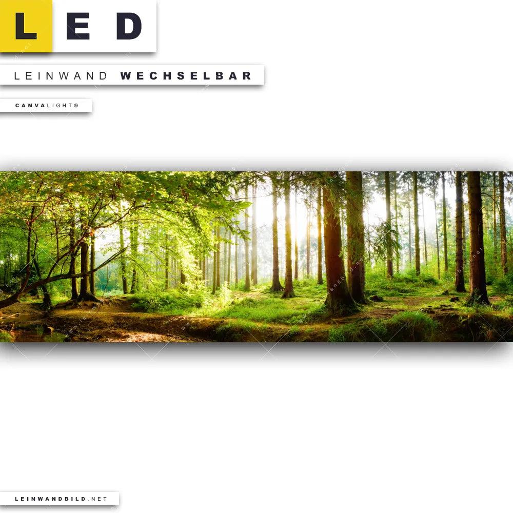 Du bist auf der Suche nach einem Landschaften, Wald - Bäume LED Leinwandbild im Panorama-Format? Begriffe wie Wald, Baum, Natur, Sonne, Sonnenstrahlen, Licht, Fluss haben Dich auf der Suche nach Deinem neuen XXL LED Wandbild mit wechselbarer Leinwand inspiriert? Farben wie Grün, Braun, Hellgrün dürfen auf Deinem neuen extra breiten Leinwand-LED-Bild nicht fehlen und Leuchtbilder im Natürlich - Realistisch Stil passen perfekt zu Deinem Einrichtungsstil?